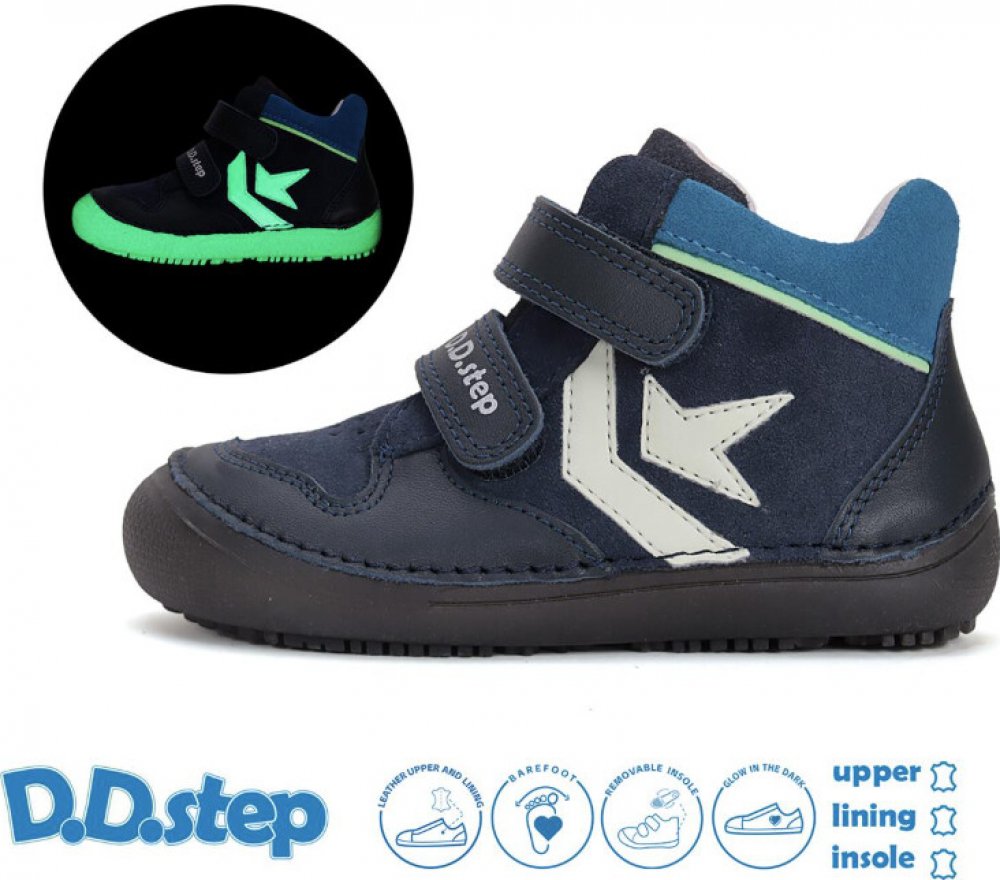 D.D.Step celoroční obuv barefoot A063-52159M Bermuda Blue SVÍTÍCÍ VE TMĚ chlapecké