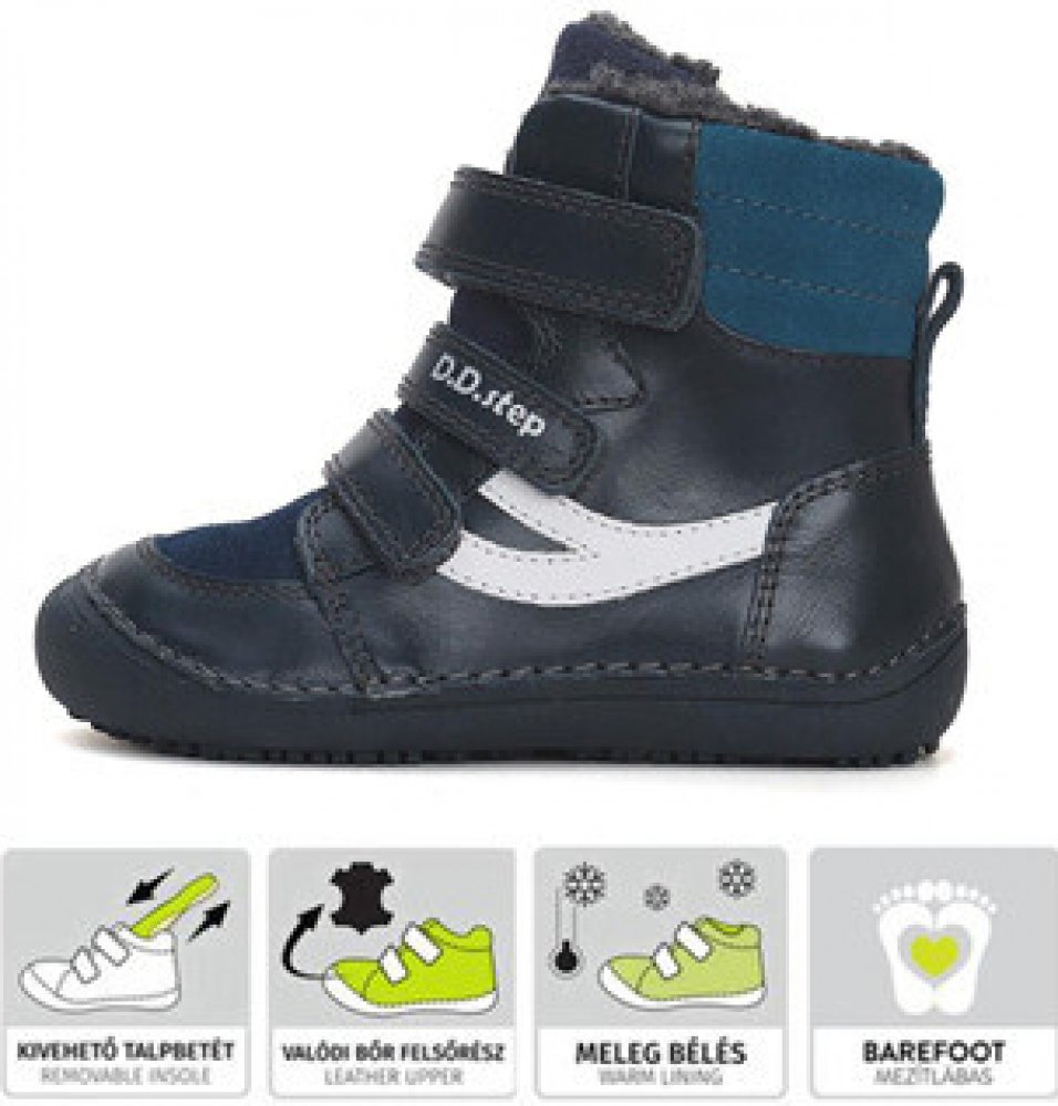D.D.Step chlapecká zimní barefoot obuv W063-42754 modrá