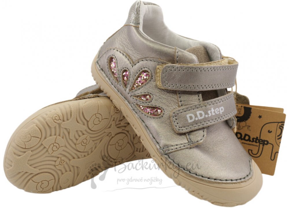 Kožené celoroční barefoot botičky od oblíbené značky D.D.step jsou pro děti zábavné svým originálním vzhledem s hravými detaily. Díky jejich speciální technologii a způsobu šití potěší skvělou odolností a dětskou nožku podpoří ve správném růstu a přirozeném vývoji.