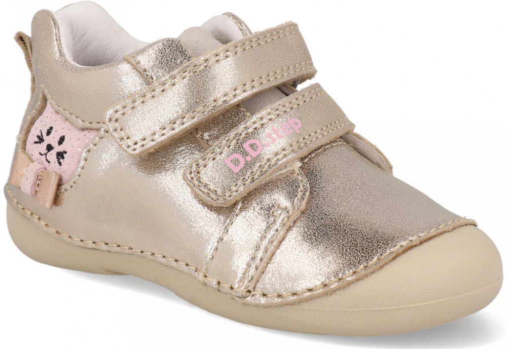 Tyto kotníkové boty podpoří zdravý vývoj dětských nožek s láskou a lehkostí, každý krůček může být pohodlný, bezpečný a plný radosti. Boty jsou lehounké, vyrobené z měkké přírodní kůže, která jemně obejme dětskou nožku. Ohebná podešev, prostorná špička a tlumicí stélka zajistí měkký došlap a pohodlí při každém kroku. Botky jsou navíc ozdobeny roztomilými detaily.
