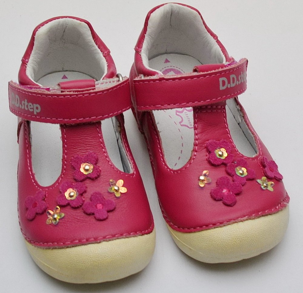 Dětské kotníkové kožené lehké vycházkové sandálky s krásně ohebnou podešví, s anatomicky tvarovanou koženou stélkou a mírně zpevněným opatkem, okopová špička ochrání botičky před okopáním, střední střih, vhodné pro štíhlé a střední nožičky bez vysokého nártu