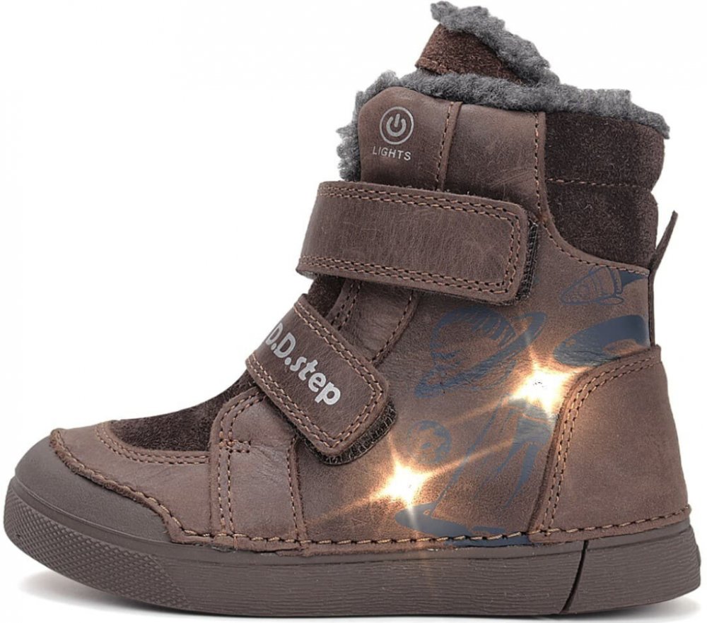 D.D.Step dětské svítící zimní boty W068-52998B Chocolate