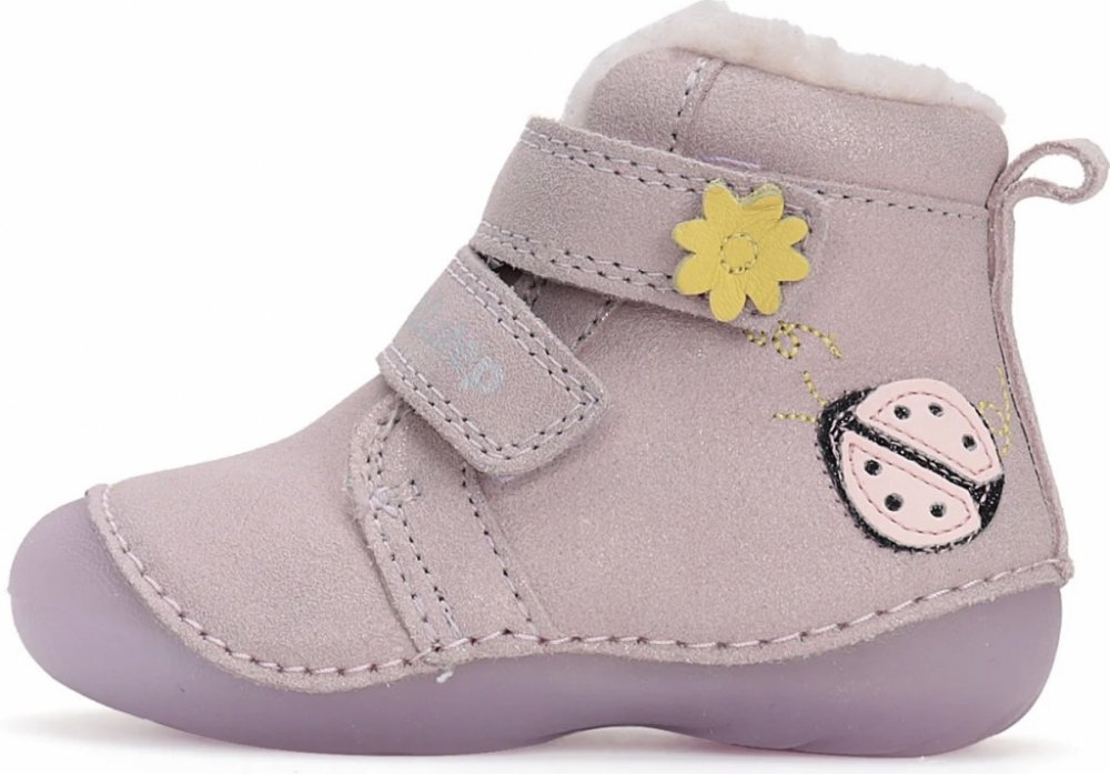 Kvalitní, teplé a dobře se obouvající botičky. Dětské zimní boty DD step jsou z kompromisní/barefoot řady v tmavě modré barvě s třpytivým zdobením a ozdobnou aplikací na kotníku. Boty jsou lehce nadkotníkové, uvnitř mají teploučký kožíšek. Velmi měkká a ohebná podrážka, krásně se přizpůsobí v chůzi, proto je vhodná i pro ty nejmenší chodce. Špička i pata je vyvýšená, chrání proti okopu. Díky dvěma suchým zipům lze boty krásně rozevřít, usnadňují tedy obouvání a dají se přizpůsobit v oblasti nártu i kotníku. Boty jsou z hladké kůže, kterou lze snadno otřít, a snadno se tak udržují.