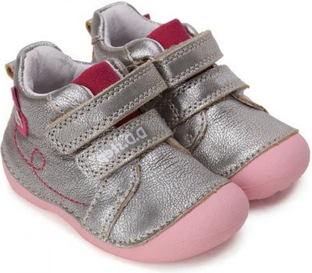 Kotníčková kompromisní obuv na suchý zip od maďarské firmy D.D.step se vyznačuje vysokým pohodlím a komfortem s atraktivním vzhledem. Obuv je lehká a flexibilní. Svršek, podšívka: kůže. Protiskluzová podešev 100 přírodní pryž. Vyvýšená podešev zabraňuje okopání. Vyjímatelná kožená stélka. Pevný opatek.Délka x šířka stélky: vel.18- 117 x 52mm, vel.19- 124 x 54mm, vel.20- 131 x 55mm, vel.21- 137 x 5...