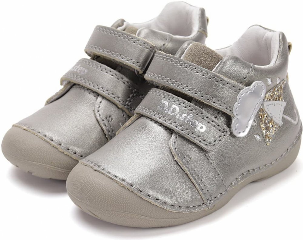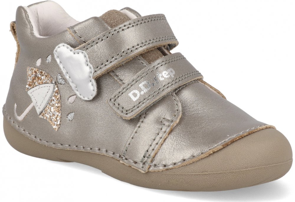 D.D.step stříbrná jarní na suchý zip kůže pro holky
