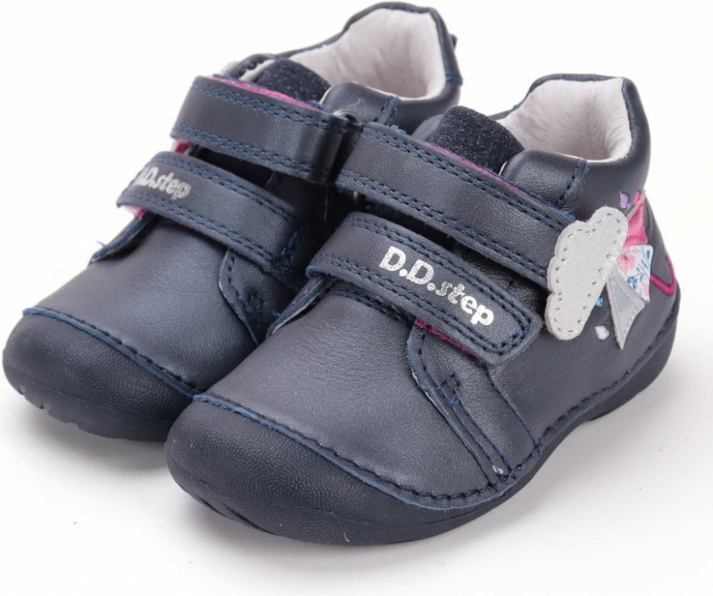 Kotníčková kompromisní obuv na suchý zip od maďarské firmy D.D.step se vyznačuje vysokým pohodlím a komfortem s atraktivním vzhledem. Obuv je lehká a flexibilní. Svršek, podšívka: kůže. Protiskluzová podešev 100 přírodní pryž. Vyvýšená podešev zabraňuje okopání. Vyjímatelná kožená stélka. Pevný opatek.Délka x šířka stélky: vel.18- 117 x 52mm, vel.19- 124 x 54mm, vel.20- 131 x 55mm, vel.21- 137 x 5...