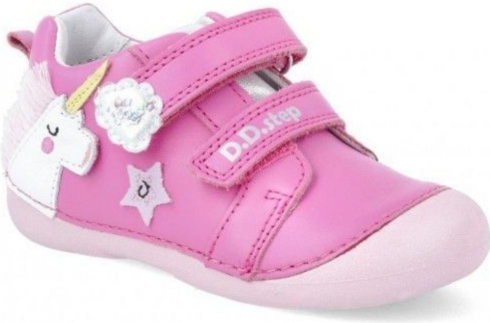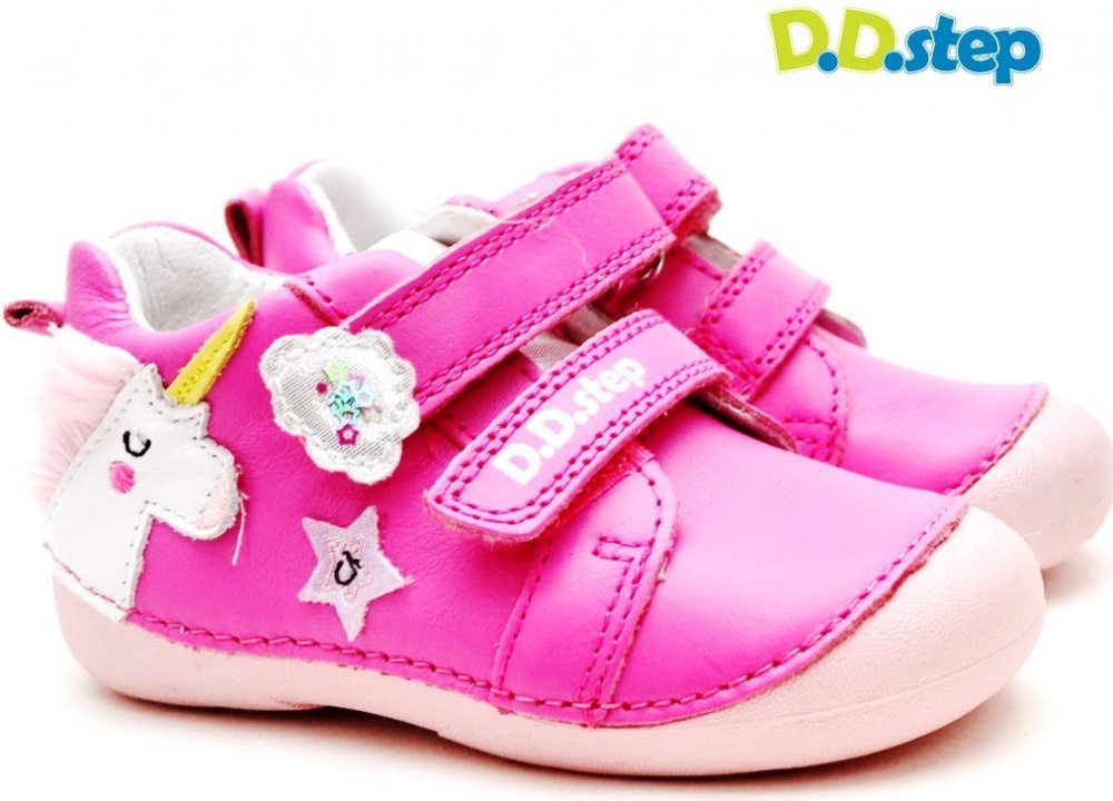 Kotníčková obuv na suchý zip od maďarské firmy D.D.step se vyznačuje vysokým pohodlím a komfortem s atraktivním vzhledem. Obuv je lehká a flexibilní. Svršek, podšívka: kůže. Protiskluzová podešev 100 přírodní pryž. Vyvýšená podešev zabraňuje okopání. Vyjímatelná kožená stélka. Délka vnitř.stélky: vel.20- 128mm, vel.21- 136mm, vel.22- 142mm, vel.23- 148mm, vel.24- 154mm.