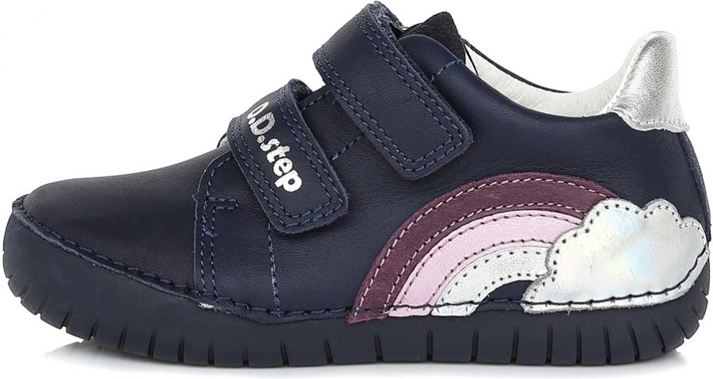 D.D.step kůže pro holky na suchý zip s vysokou flexibilitou podrážky volnočasové modrá celoroční široké rubber