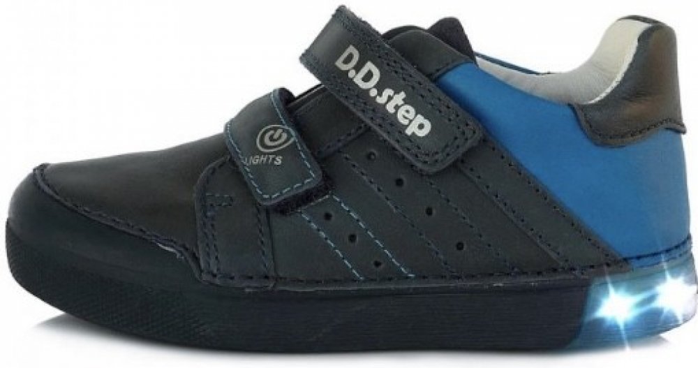 D.D.step kůže volnočasové pro kluky celoroční na suchý zip nízké modrá