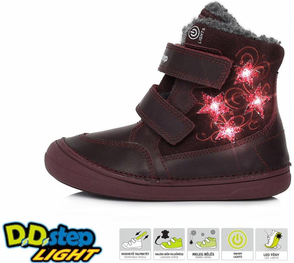 D.D.Step svítící zimní boty 078 raspberry