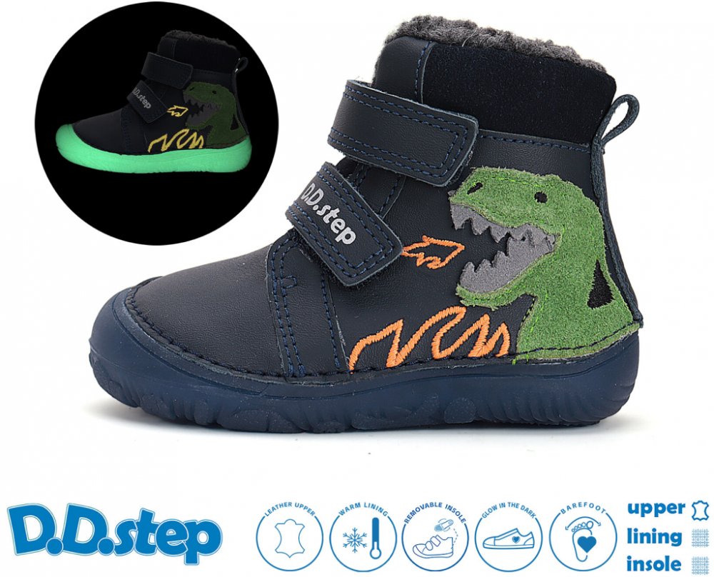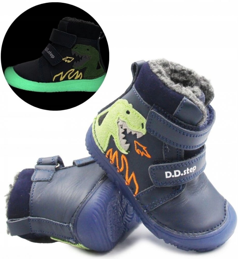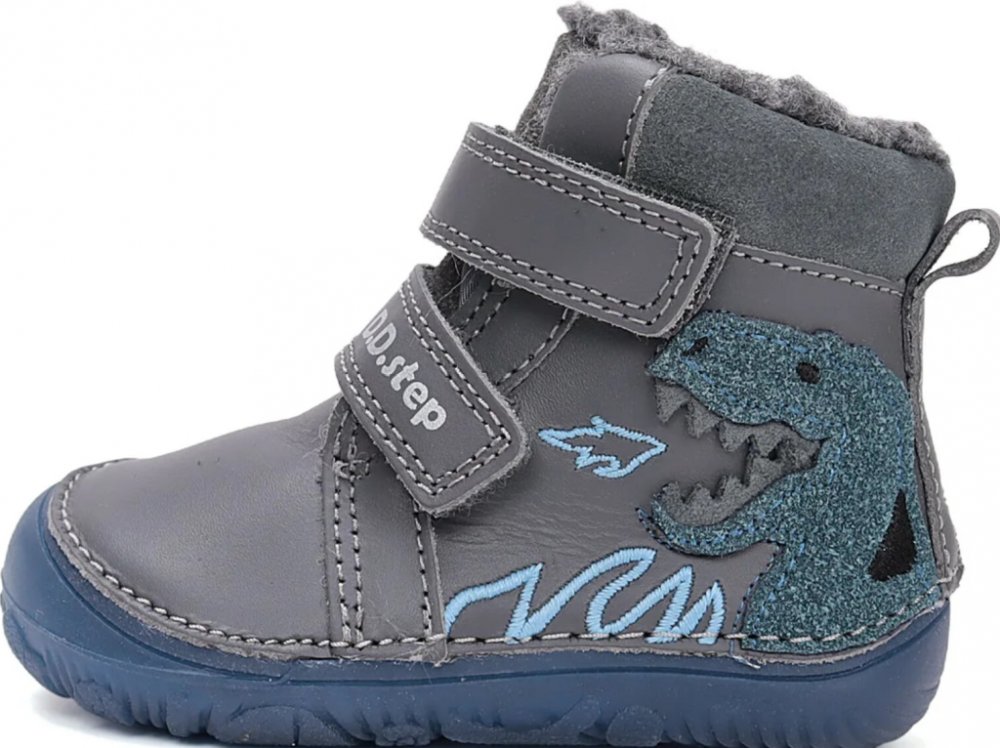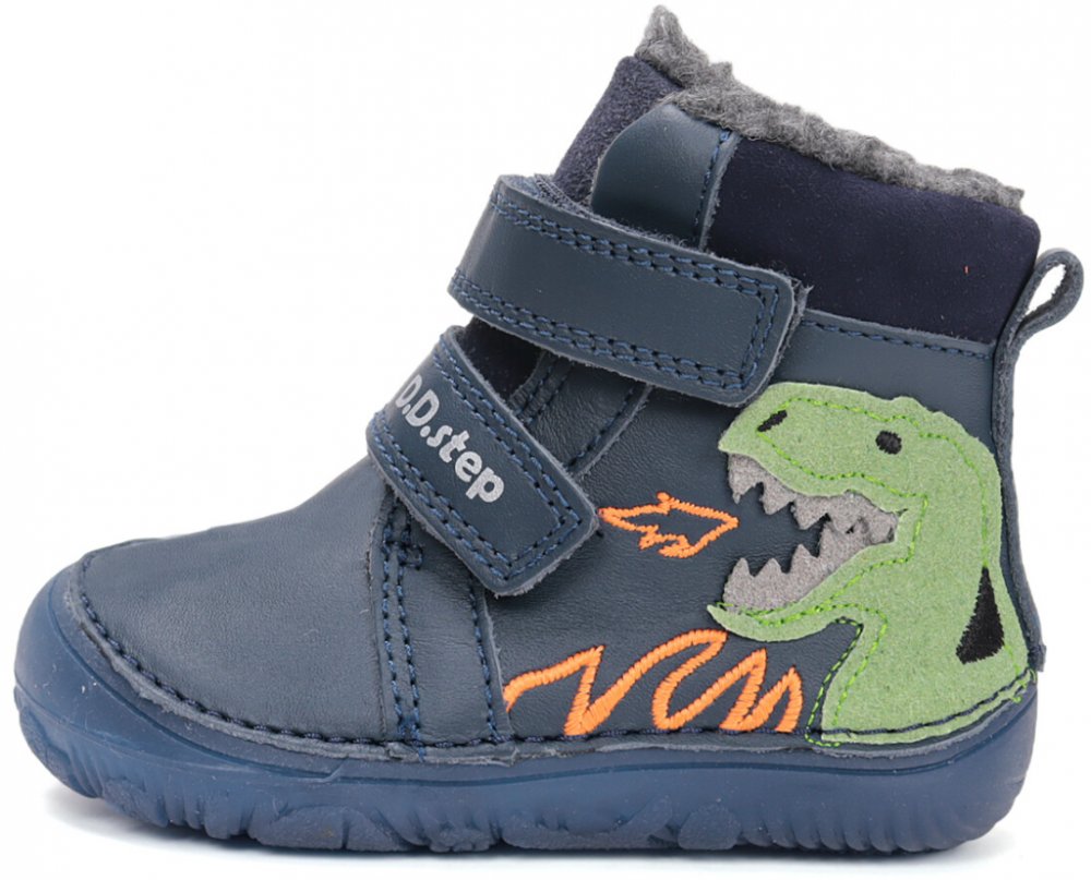 D.D.Step W073-52943 dětské zimní barefoot boty modrý dinosaurus modrá