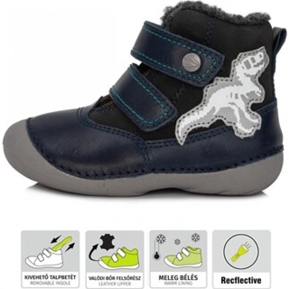 Vysoce prodyšná,kotníčková zimní obuv z kvalitních hovězích a vepřových usní s vyjímatelnou absorpční stélkou a pevnějším opatkem. Velmi lehká, měkká, neklouzavá podeševz přírodní pryže. Špička chráněna proti okopu. Praktické zapínání na dva suché zipy. Použité materiály zaručují flexibilitu a přizpůsobivost tvaru nožičky dítěte, prodyšnost obuvi a absenci toxických látek. Voděodpudivá úprava.
