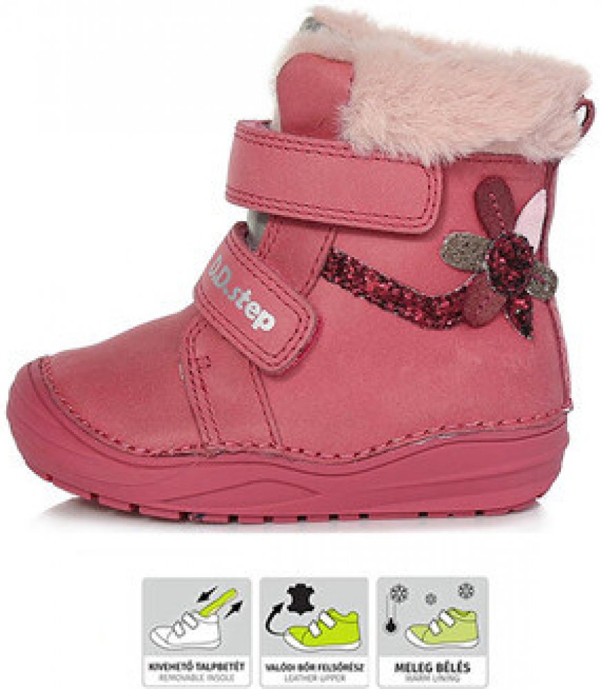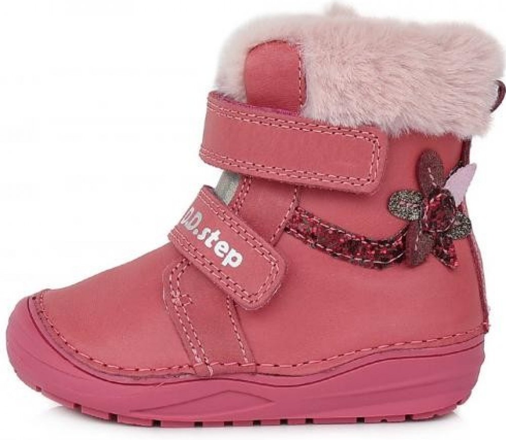 Zimní kožené boty vyššího střihu zateplené kožíškem, včetně vyjímatelné rovné stélky bez podpory klenby s nezpevněným opatkem, se zapínáním na suchý zip.Velmi měkká a pružná a flexibilní podešev ve všech směrech. Podešev obuvi se přizpůsobí tvaru chodidla a poskytuje maximální povrchový pocit. Bota umožňuje, aby všechny svaly novou, šlachy a kosti byly zapojeny do chůze, stejně jako chůze naboso, a tak přispívá ke zdravému vývoji chodidla.Použité materiály zaručují flexibilitu a přizpůsobivost tvaru nožičky dítěte, prodyšnost obuvi a absenci toxických látek.Konstrukce obuvi je navržena tak, aby co nejvíce umožňovala přirozený růst dětské nožičky a pohyb chodidla při chůzi a běhu - zakulacená špice chráněná proti okopu.Obuv D.D. Step se vyznačuje vysokým pohodlím a komfortem pro děti, které ji nosí a přitom zcela podporuje zdravý vývoj dětské nožičky. Obuv D.D. Step se také vyznačuje atraktivním a nadčasovým vzhledem.Boty D.D. Step jsou vyráběny z měkkých kůží, jsou používány neklouzavé ohebné podešve a kožené stélky. Použité materiály zaručují flexibilitu a pohodlí pro dětskou nožičku. Konstrukce obuvi je navržena tak, aby co nejméně bránila zdravému vývoji dětské nohy.