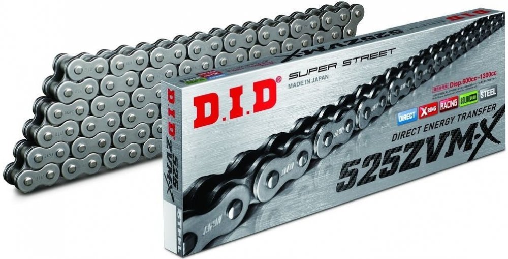 DID Řetězová sada D.I.D ZVMX, TRIUMPH 1200 Thruxton, R rok výroby 2016-2022, Řetěz DID 525 ZVMX, X-ring, počet článků 100, kolečko 1186-16 zubů, rozeta 2014-42 zubů. Akční výprodej DID řetězových sad - omezený počet kusů.