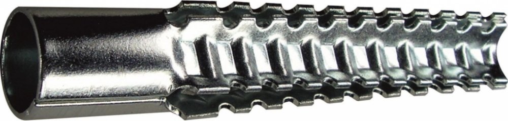 Průměr hmoždinky musí odpovídat průměru vrtané díry. Pro správnou funkci je nutné použít vrut o 5 mm delší než je délka hmoždinky plus síla připevňovaného materiálu. Při zašroubování vrutu se hmoždinka dle daného stavebního materiálu roztáhne nebo se zauzluje. Výhodou kovových hmoždinek je tepelná odolnost. Použití: beton, kámen, pórobeton, plná cihla a děrovaná cihla. Vhodné pro vrut o průměru 4-5 mm.