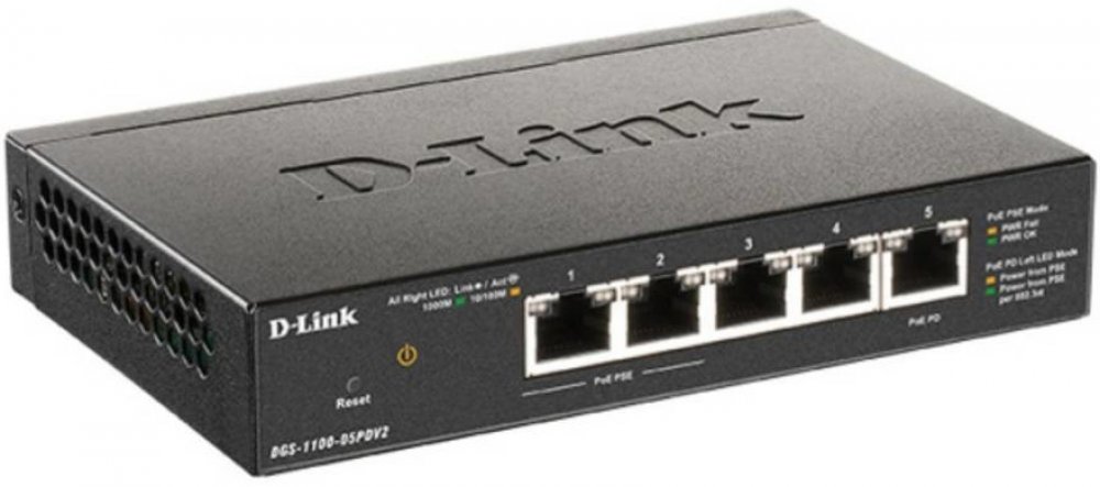 Switch je aktivní síťová jednotka, který propojuje zařízení případně další prvky sítě. Je vhodný k řízení síťového provozu. D-Link DGS-1100-05PDV2 je určen k umístění na pracovní desku popřípadě pověšení na zeď. Switch je opatřen 5 ks RJ-45 portů, které jsou určeny k propojení se síťovými prvky. Technologie 10/100/1000Base-T je schopna přenášet data až při rychlosti 1000 Mbit/s. Rozměry přepínače odpovídají hodnotám 150 × 97 × 28 mm. Díky technologii QoS neboli Quality of Service je znemožněno přetížení switche, je také možné nastavit prioritu koncových zařízení. Tento switch navíc poskytuje schopnost účinné správy a nastavení. Integrované LAN porty podporují přenosovou rychlost až do 1 Gbit. Hmotnost switche je 380 g.Zajímavé parametry switche D-Link DGS-1100-05PDV25 metalických portů 1000Base-T RJ-45, kde1 port je PoE-PD (PoE Powered Device) a 2 porty jsou PoE-PSE (Power Sourcing Equipment)Podpora funkce PoE Pass Through pro napájení až 2 připojených zařízení (max. 18 W) Přenosová...