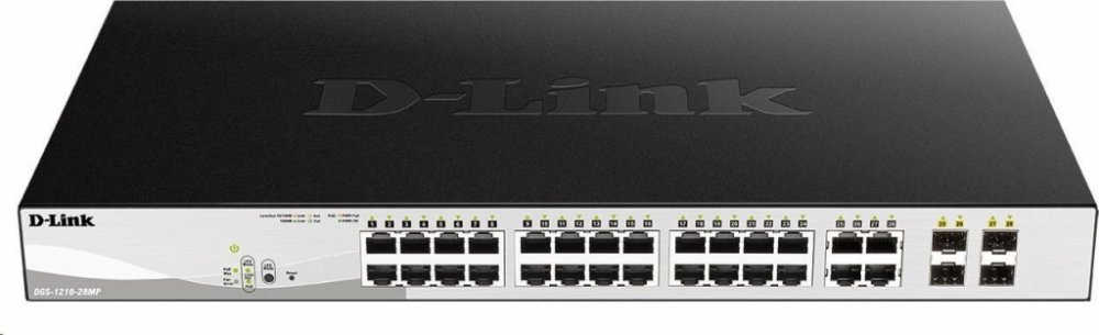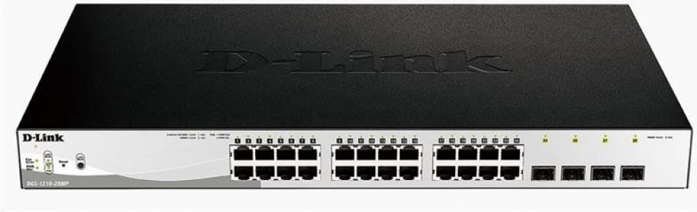 DGS-1210-28MP: 28-Port Gigabit Max PoE Smart Managed Switch including 4 SFP ports (24 x PoE ports, fan)