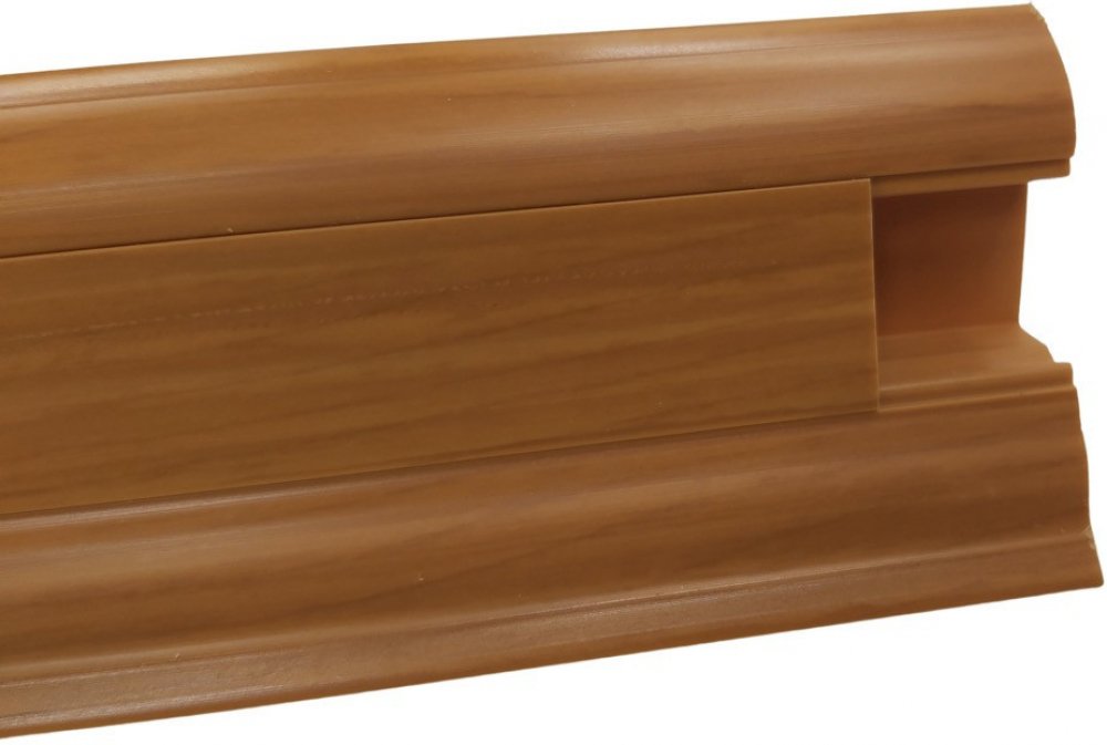Soklová obvodová lišta SLK50 v dekoru Třešně pro použití v kombinaci s PVC včetně všech potřebných doplňků jako jsou rohy, spojky a koncovky. Tato lišta v sobě obsahuje kabelový kanálek, kde kabel je možné táhnout i skrz jednotlivé komponenty. Lišta je opatřena měkkými manžetami u podlahy a stěny. Vyrábí se z materiálu na bázi PVC.