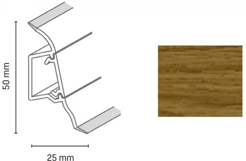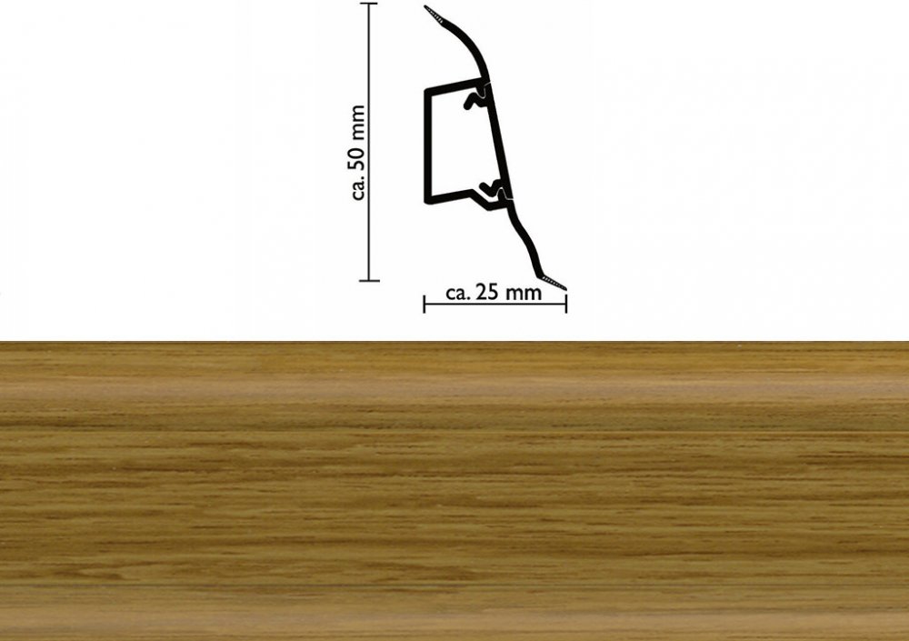 SYSTÉMOVÁ SOKLOVÁ LIŠTA SLK50Soklová lišta s kabelovým kanálkemLišta je vyrobena z materiálu na bázi PVC. Je opatřena měkkými manžetami u stěny i u podlahy.K liště je možno objednat i příslušenství: roh, kout,spojky, koncovky v dekoru lišty.Rozměry lišty: 50x25x2500mm