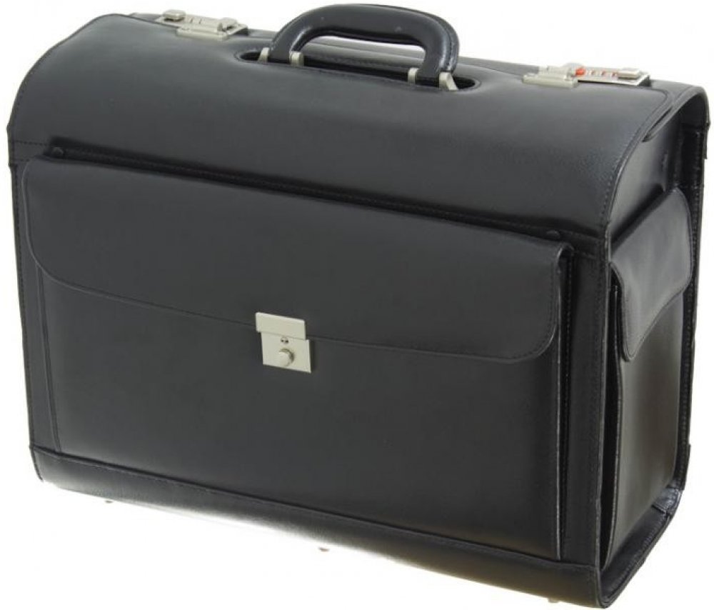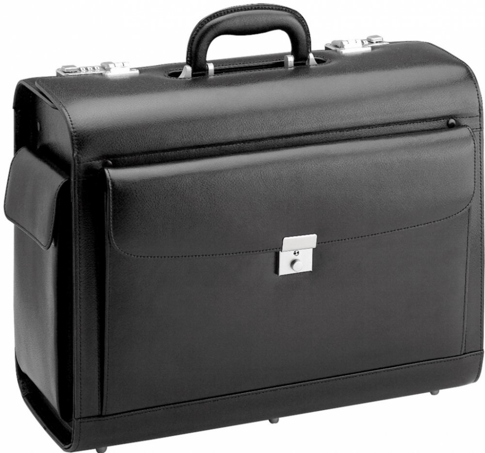 Černý pilotní kožený kufr německé značky D&N bez koleček, vhodný pro manažery pro úschovu šanonů či potřebných dokumentů.