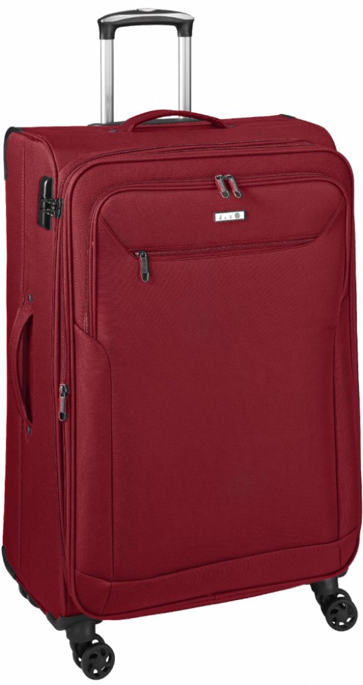 Textilní cestovní kufr s expandérem na čtyřech kolečkách se zámkem.