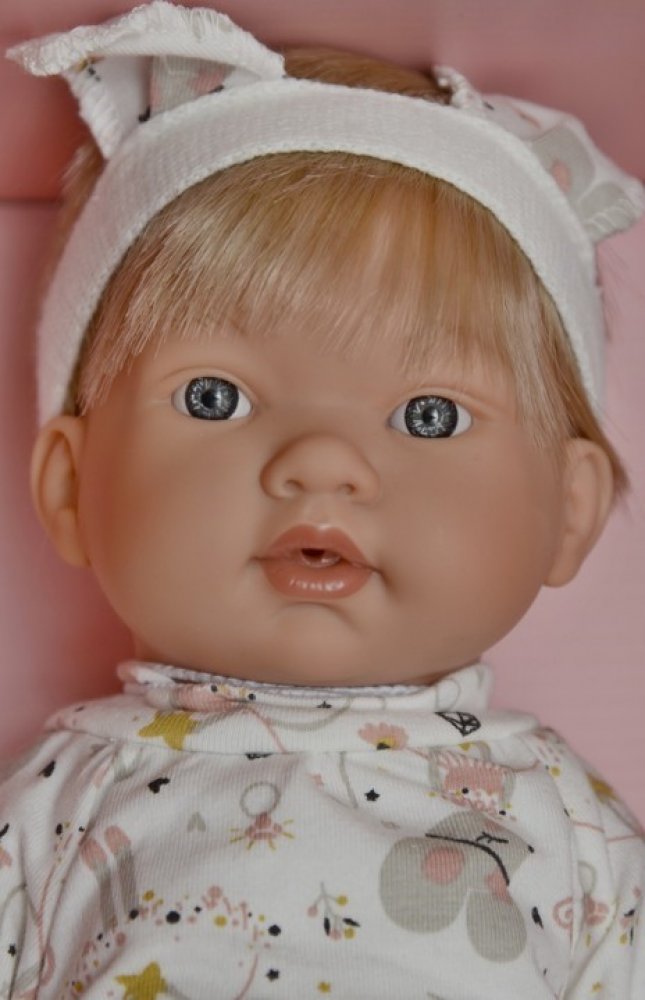Realistické miminko jako živé, kolekce Coque je holčička Doris, vyrobená ve Španělsku firmou D´nenes. Doris je 34 cm vysoká, je holčičkou jenom podle oblečení, pohlaví není znázorněno. Celé tělíčko je vyrobené z vinylu. Má krátké blonďaté vlásky a modré akrylové oči, nemrkací. Je oblečena do bílého trička s delším rukávem s obrázky různých myšek a teplé šedé sukýnky. Na hlavě má čelenku s oušky. ...