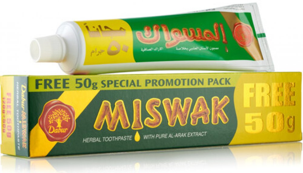 Tradičně se zuby čistili malou větvičkou, utrženou ze stromu miswak, jejíž jeden konec se roztřepil. Bylinná zubní pasta s miswakem má bílou barvu a výraznou svěží mentolovou chuť i vůni. Účinky přírodní látky miswak: