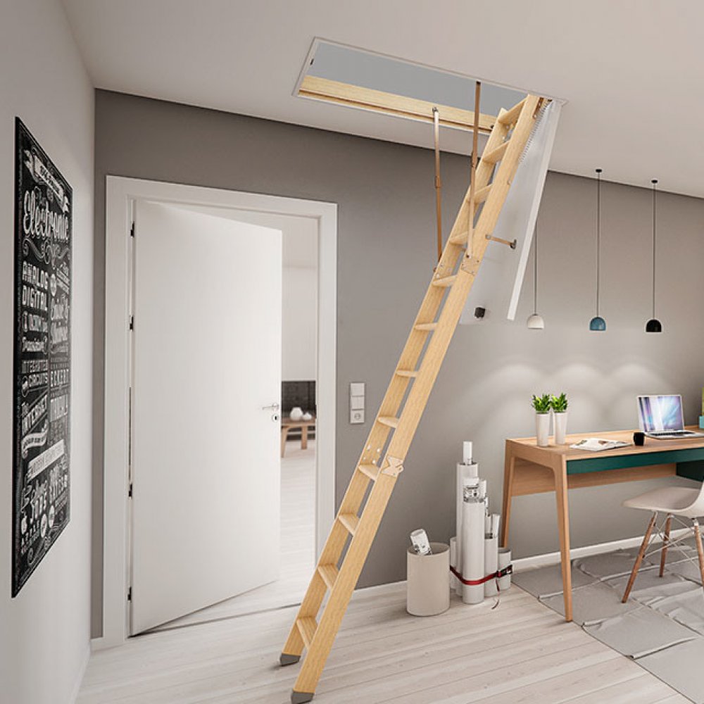 Žebřík: materiál: borovice - bočnice, buk - nášlapy, tlouštka nášlapu 17,5 mm, hloubka nášlapu 69 mm, šířka nášlapu 400 mm, tlouštka bočnice 21 mm, hloubka bočnice 84 mm