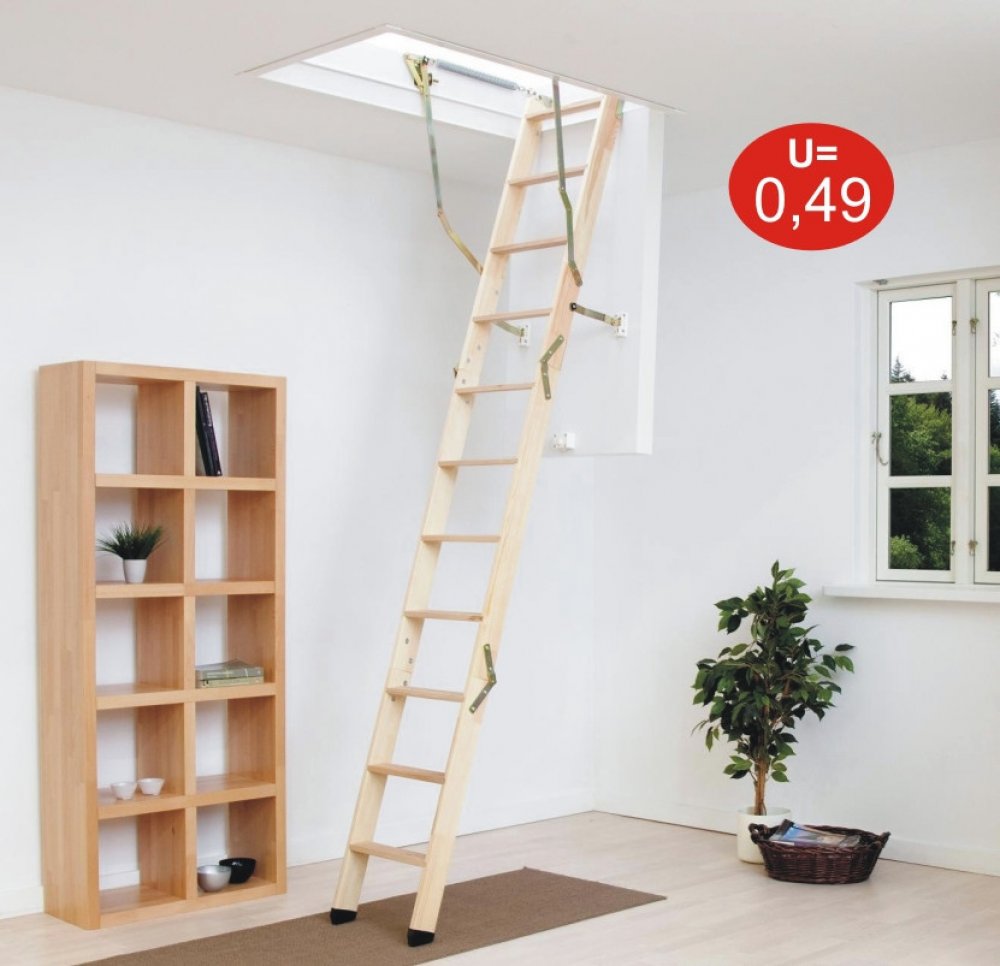 Půdní schody Click Fix 76 značky DOLLE jsou skládací třídílné schody se zatepleným poklopem 76 mm (lepší tepelné izolační parametry) a patentovanou technologií Click Fix, která umožňuje snadnou a rychlou montáž. Nezabírají skoro žádné místo v prostoru půdy a díky vyváženému pružinovému systému poskytují lehké a plynulé ovládání. Pro celkovou bezpečnost slouží i plastové koncovky k žebříku, kovové madlo a protiskluzové nášlapy s hloubkou 69 mm a tloušťkou 17,5 mm. Žebřík je 400 mm široký a výška mezi jednotlivými nášlapy je 250 mm, bočnice jsou široké 21 mm a hluboké 84 mm. Schránka je 190 mm vysoká a je vyrobena ze smrku, nášlapy u žebříku jsou z buku a bočnice jsou z borovice. U poklopu jsou schované závěsy, díky kterým je snadnější malování, lakování nebo obložení samotného poklopu. Schody je možné využít do výšky stropu 274 cm. Přednosti Půdních schodů Click Fix 76 rychlá a snadná montáž vybaveno plastovými krycími lištami protiskluzové nášlapy dokonalá těsnost o 36 % snížená tepelná ztráta oproti modelu Profi o 70 - 80 % snížená tepelná ztráta oproti klasickým modelům s poklopem 26 mm Montáž Půdních schodů Click Fix 76 Instalace schodů je velmi jednoduchá a zvládne ji člověk i sám. Nejprve je potřeba přilepit Twin-aktiv folii, následuje usazení a připevnění schránky k půdnímu prostoru za pomoci dvou prken, které zajistí, že schránka bude během montáže na svém místě. Odstraní se pomocná prkna a zasune se do mezery mezi schránkou a zdí další Twin-aktiv folie, která se přilepí ke schránce. Následně se tato mezera vyplní ze shora skelnou vatou. V dalším kroku se nainstaluje pružinový systém, připevní se žebřík a přidělá se poklop. Nastavení odsazení schránky se provádí pomocí utahování či povolování šroubů, kterými je schránka přidělána. DOLLE Půdní schody Click Fix 76 U - hodnota 0,49 W / m2.K Nosnost 150 kg Možná výška stropu 274 cm Váha 27 kg (o 25 % méně než ostatní) Vzduchotěsnost třídy 4 Vybavení plastové krytky na žebřík, tyč, kovové madlo, Twin-aktiv folie Hloubka nášlapu 6,9 cm Výška schránky 19 cm