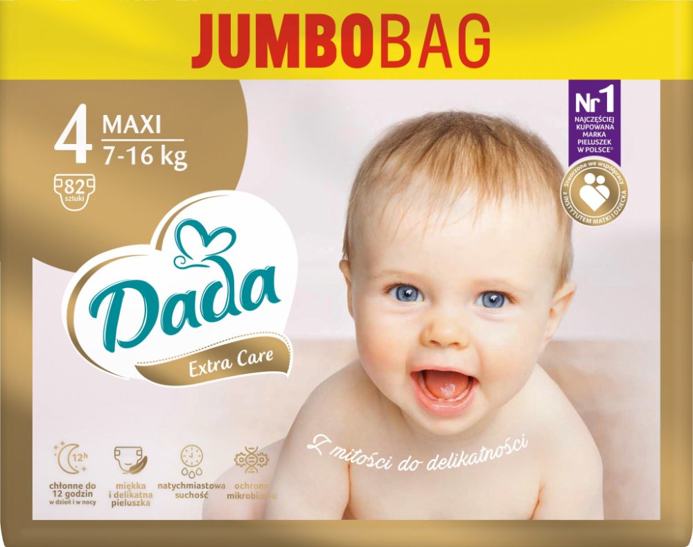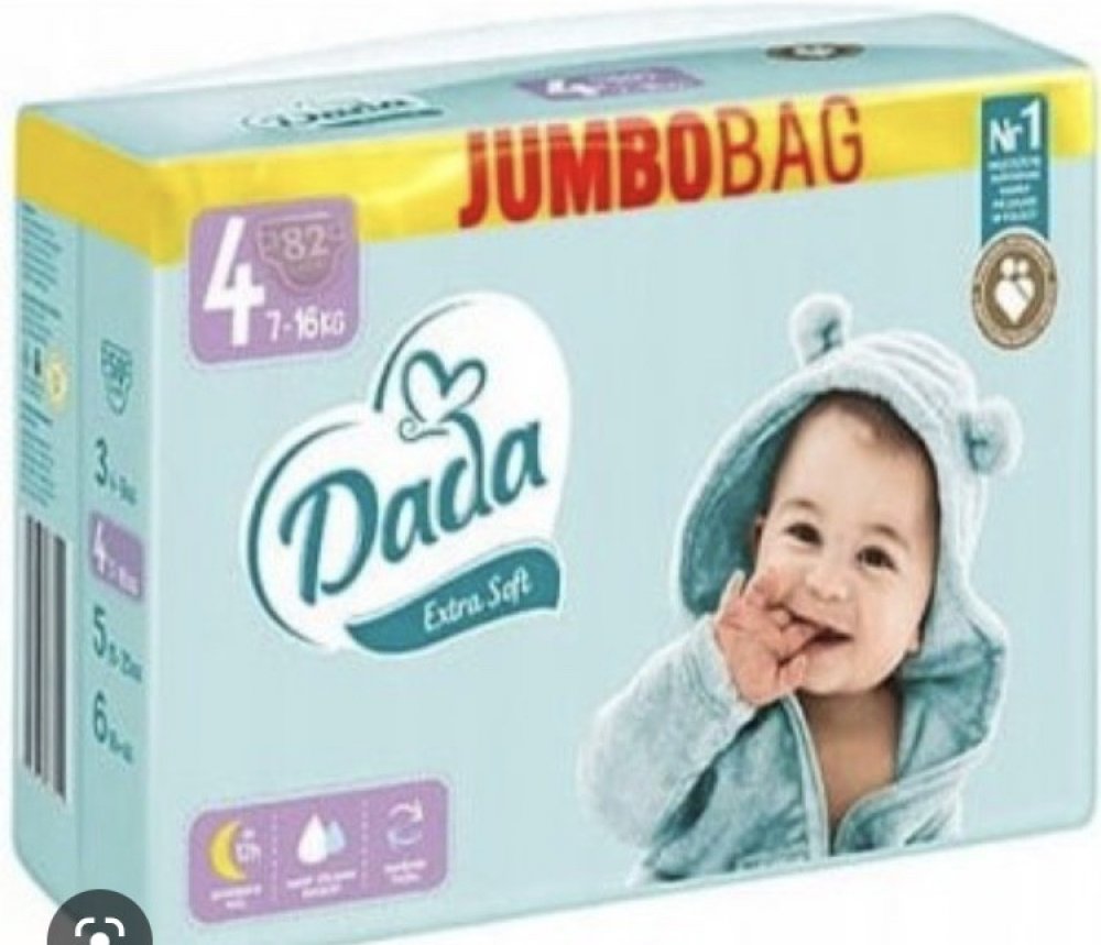 Dětské pleny Dada jsou vyrobené v EU a určené pro polský trh. Jedná se o kvalitní plenky, které sklízí jedno ocenění za druhým a jsou velmi oblíbené nejen u polských maminek. Díky kombinaci příznivé ceny a výborné kvality jsou plenky Dada velmi oblíbené.