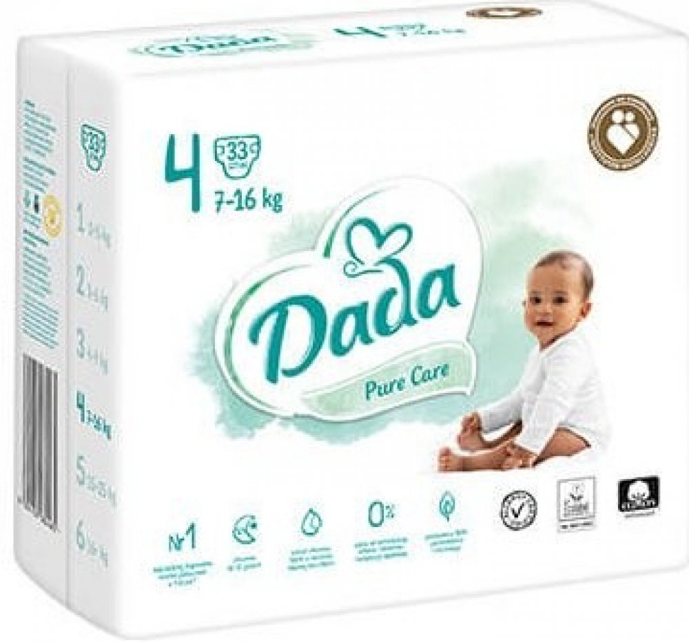 Plenky Dada Pure Care se připojují k nabídce řad plen Dada Extra Soft, Dada Extra Care a Pants, které jsou rodiči i miminky dobře známé a oblíbené. Produkt je dostupný ve velikostech od 1 do 6.