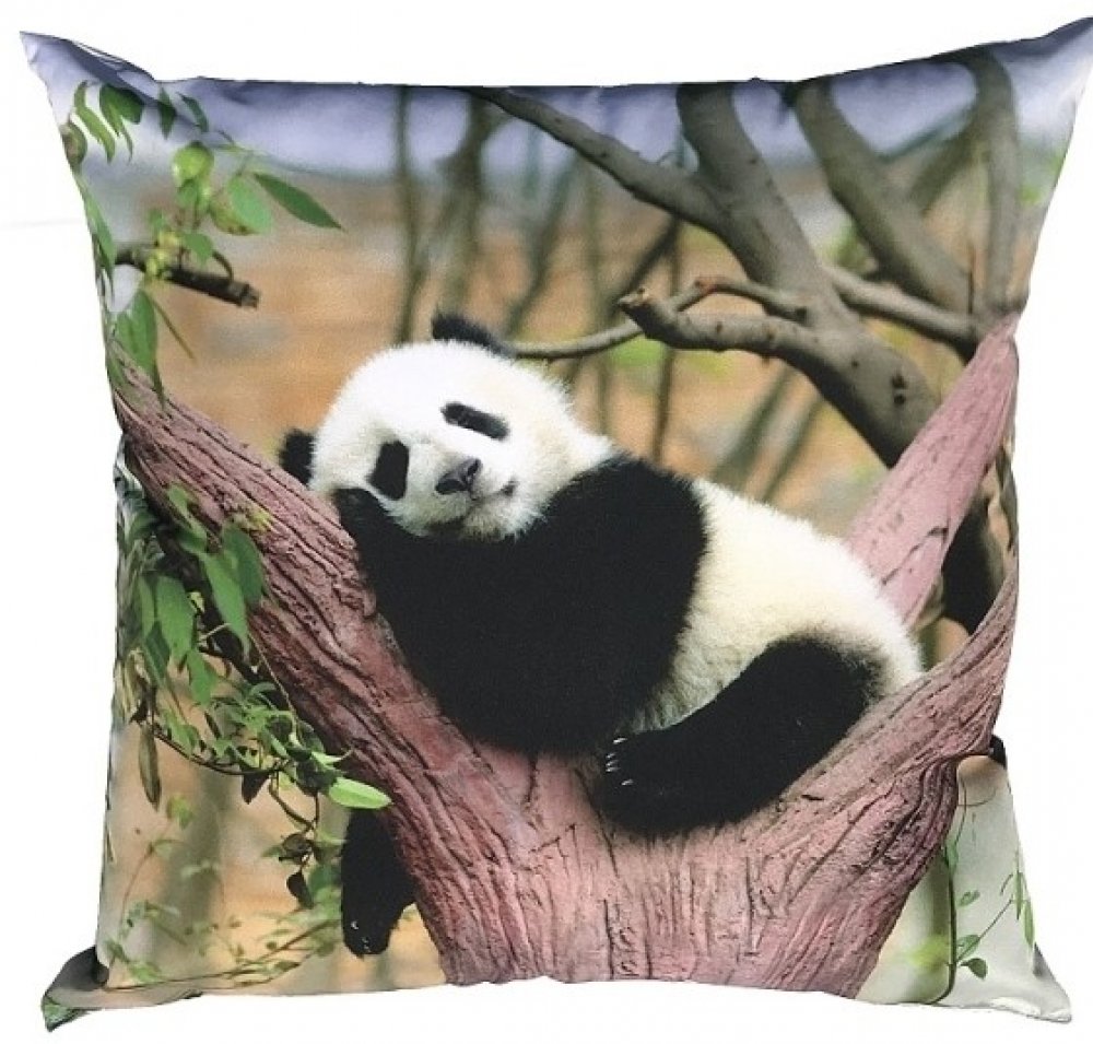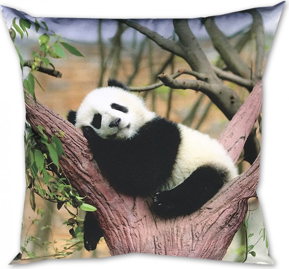 Klidný a roztomilý polštářek s fototiskem pandy odpočívající na větvích stromu. Panda působí uvolněně a spokojeně, zatímco pozadí tvoří přírodní prostředí s větvemi a listím. Ideální doplněk pro milovníky zvířat a přírody. Přírodní a uklidňující fototisk