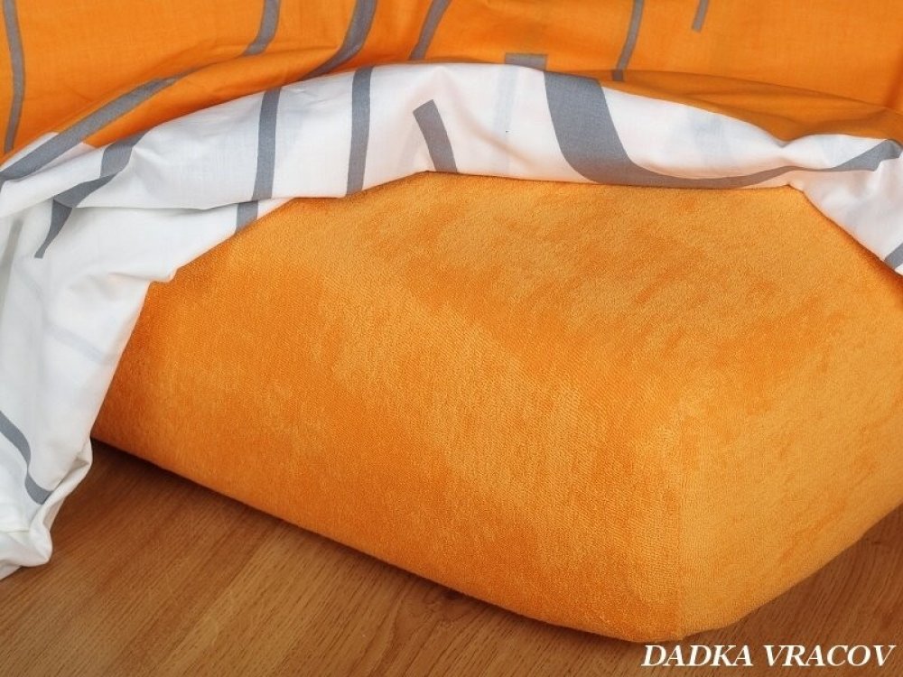 Kvalitní froté prostěradlo pomerančové barvy. Froté prostěradla jsou napínací, opatřena gumou v tunýlku. K výrobě těchto prostěradel je používána kvalitní froté tkanina s vysokou gramáží 220 g/m2. Rozměr prostěradla je 35x75x2 cm.