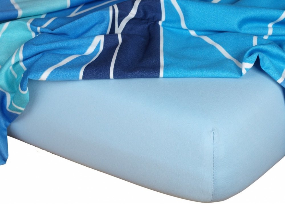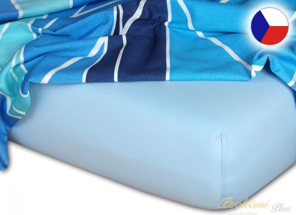 Kvalitní jersey prostěradlo světle modré barvy. Jersey prostěradlo je napínací, opatřeno gumou v tunýlku. K výrobě prostěradla je používána kvalitní jersey tkanina s vysokou gramáží 190 g/m2. Rozměr prostěradla je 90x220x20 cm.