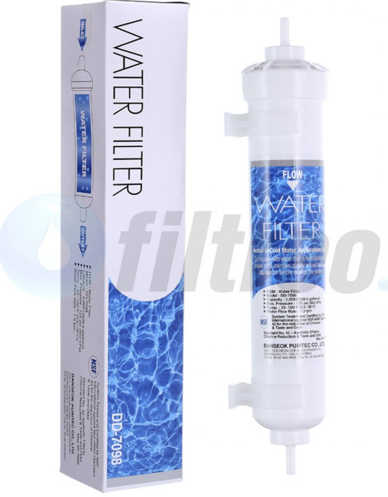 Originální vodní filtr DD-7098 pro chladničky značky DAEWOO. Vodní filtr redukuje toxické látky, jako například chloridy, těžké kovy a azbest.