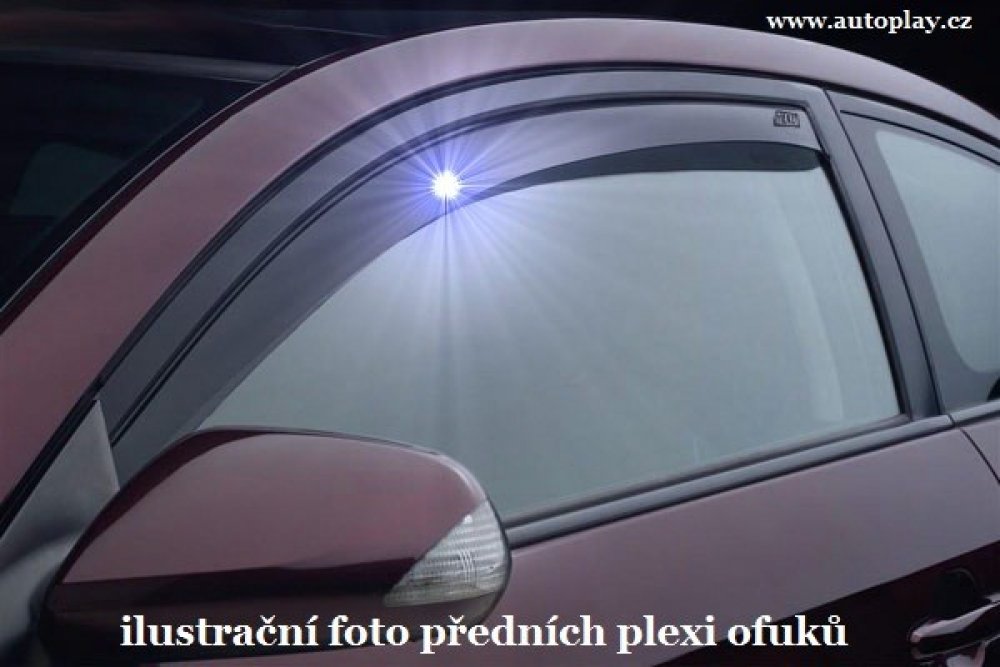 Větrné clony, ofuky, deflektory to vše jsou názvy, které se použivají pro protiprůvanové plexi na boční skla automobilu. Jde o jednoduchý a efektní způsob jak zkrášlit Vaše auto - dodat šmrnc a elegantní vzhled. Ofuky jsou z kvalitního tmavě zbarveného speciálního průhledného plexiskla. Deflektory upraví proudění vzduchu, aby byl přirozený a při otevřeném oknu nebude cirkulující vzduch vydávat vel...