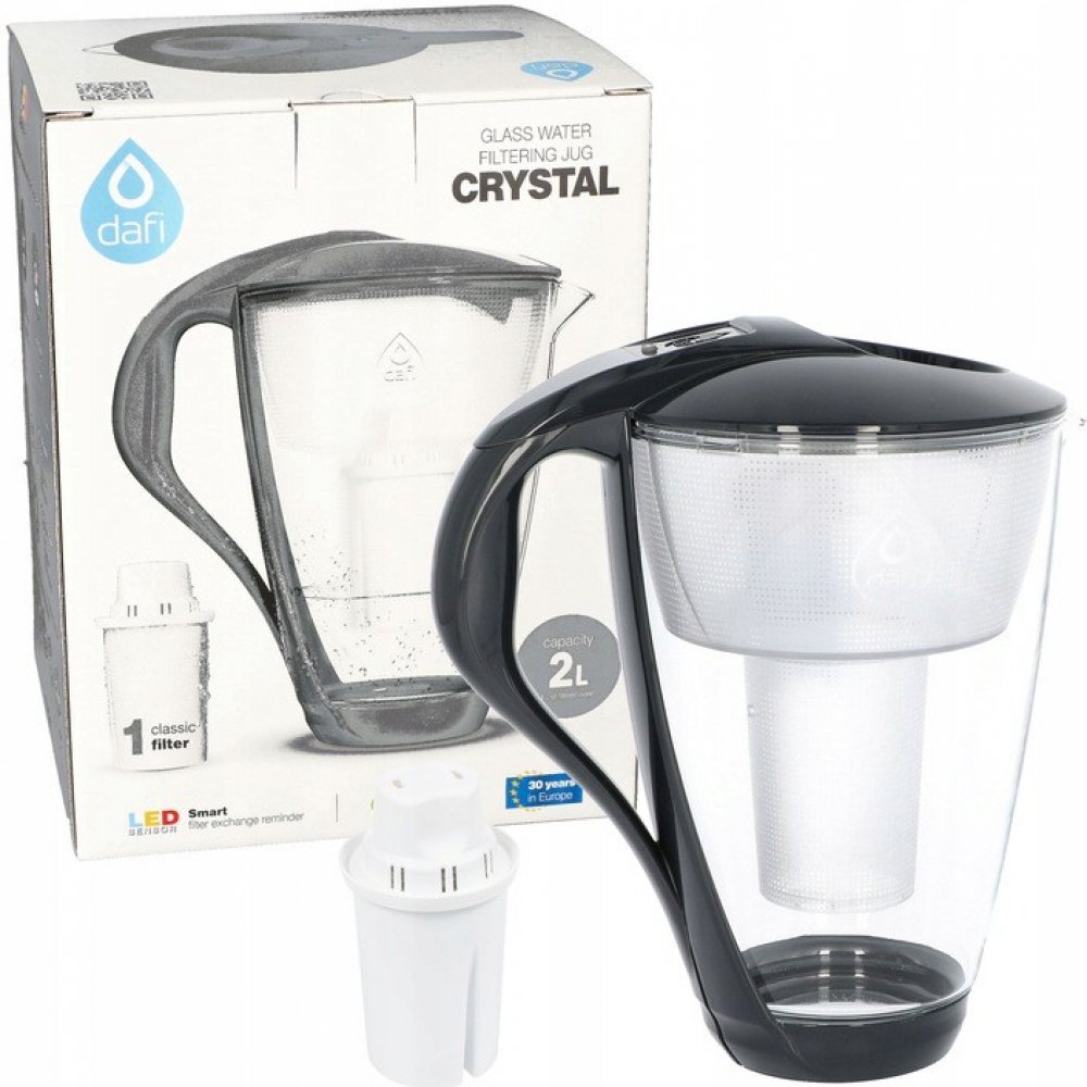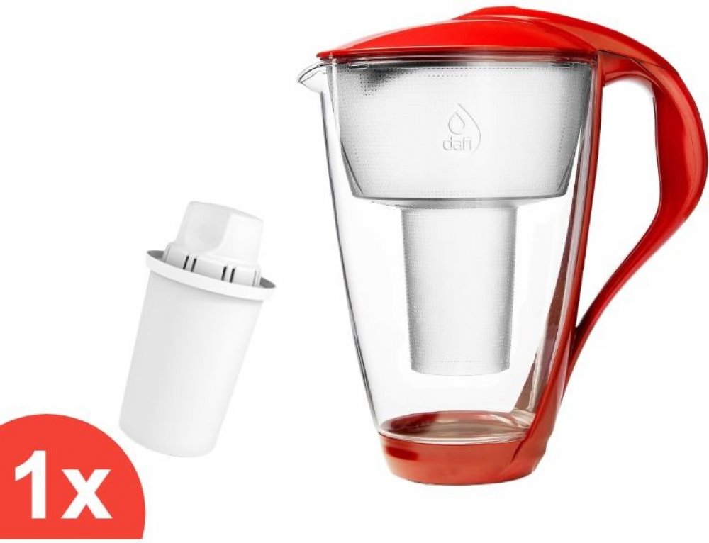 Dafi Crystal LED skleněná filtrační konvice vlčí mák + 1 filtr Dafi Classic Luxusní skleněná filtrační konvice Dafi Crystal Classic v červené barvě s celkovým objemem 2,0 litry, kapacitou přefiltrované vody o objemu 1,0 litru a LED senzorem zbavuje vodu od chloru, těžkých kovů a škodlivých látek, které se mohou vyskytnout ve vodě z vodovodního řádu. Dále eliminuje přebytek sloučeniny způsobující tvorbu vodního kamene v domácích spotřebičích. Jednoduchý a komfortní design umožňuje napouštění vody do skleněné konvice bez odklopení víčka pouze jednou rukou. Filtrační konvice rychlá a jednoduchá cesta k čisté voděFiltrační konvice představují nejjednodušší a nejrychlejší způsob, jak mít doma čistou vodu. Umožňují během několika okamžiků vyčistit vodu z kohoutku, zlepšit její chuť a podporovat pravidelnou hydrataci organismu. Nákup filtrační konvice a kompatibilních filtrů je malý náklad ve srovnání s částkami, které utratíme za vodu v plastových lahvích, což vede k dlouhodobým úsporám.Skleněná filtrační konvice Dafi CrystalDafi Crystal je ekologická skleněná filtrační konvice. Dokončovací prvky, jako je rukojeť a kryt, jsou vyrobeny z kvalitních bílých plastů a silikonové dno chrání před překlopením a rozbitím. Konvice je navíc vybavena praktickým indikátorem spotřeby filtru Dafi LED, který signalizuje nutnost výměny kartuše změnou barvy.Konvice může s úspěchem sloužit i jako stylová karafa, která je vyrobena z vysoce kvalitního skla.Proces filtrace pomocí filtrační konviceKohoutkovou vodu je třeba nalít do konvice otvorem ve víku -> poté se voda přes filtr čistí. Po přefiltrování se voda dostává do hlavní nádobky, odkud ji lze snadno přelít do sklenice nebo karafy. Celková kapacita filtrační konvice jsou 2 litry. Kompatibilní filtry Dafi ClassicFiltry Dafi Classic jsou kompatibilní s nabízenou filtrační konvicí Dafi Crystal. Směs aktivního uhlí a iontoměničové pryskyřice umožňuje odstranit z vody těžké kovy, chlór a další sloučeniny. Navíc vodu změkčuje, což chrání domácí spotřebiče před usazováním vodního kamene. Výměna filtru je doporučena po uplynutí 30 dní nebo po vyčištění 100-150 litrů vody, podle toho, co nastane dříve.Další výhody filtraceDomácí filtrace není jen o úspoře peněz a pohodlí, ale také o ochraně životního prostředí. Snížením nákupu vody v plastových lahvích snižujeme množství odpadu a škodlivého materiálu, který končí na skládkách. Změňme své návyky a pečujme o planetu s Dafi!Technické údaje Kompatibilní patrony: Dafi Classic filtry | FilterLogic FL-601T. Indikátor výměny filtru prostřednictvím LED senzoru. Víčko pro nalévání vody funguje jako zpětná klapka.Součástí balení je filtrační konvice + 1 ks filtrační patrony Dafi Classic.Červená filtrační konvice Dafi Crystal Classic je k dostání také v balení s 2 kusy, 4 kusy či 6 kusy filtračních patron Dafi Classic.