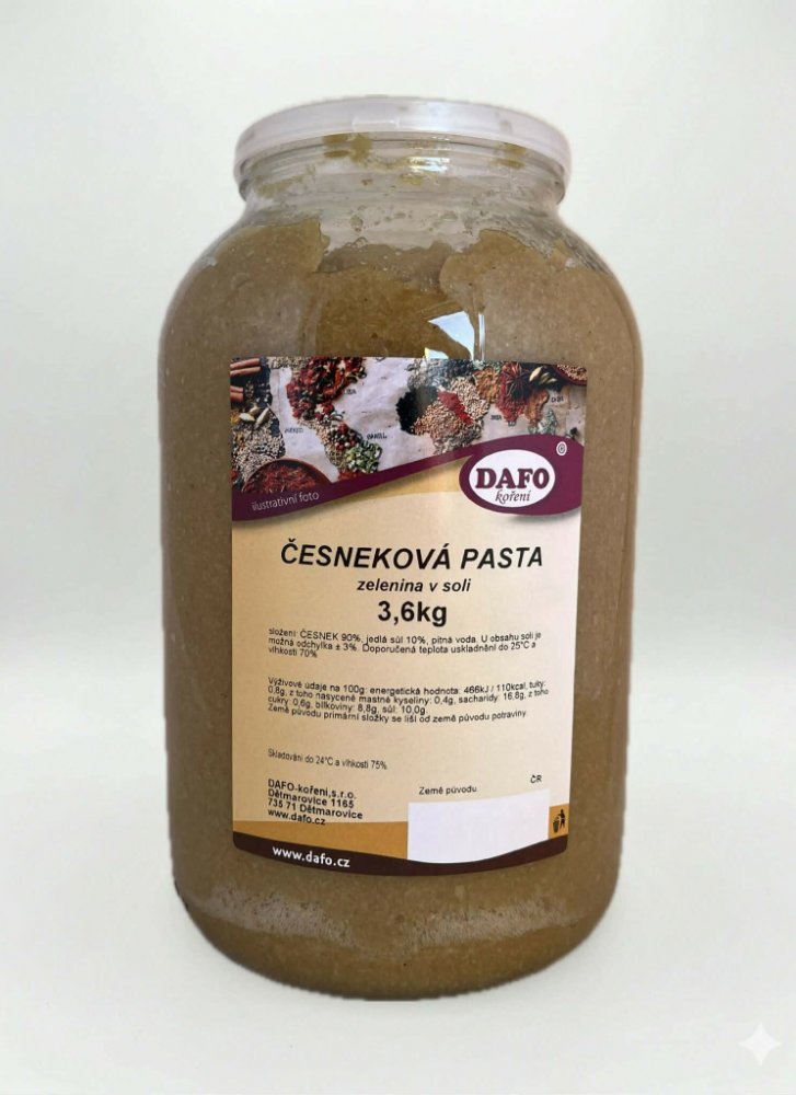 SLOŽENÍ: ČESNEK 90%, jedlá sůl 10%, pitná voda,