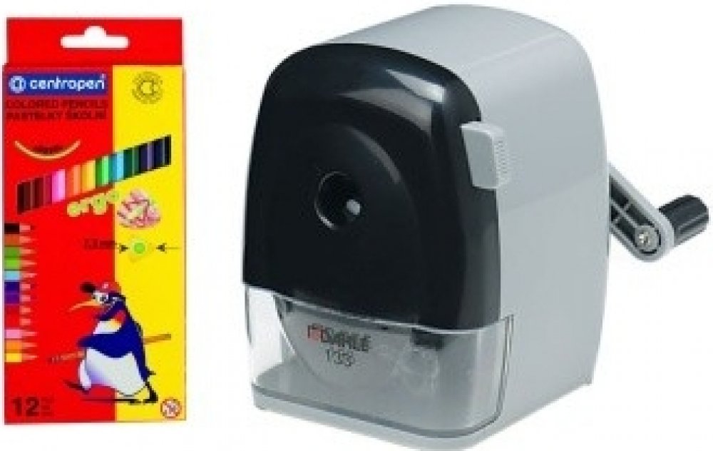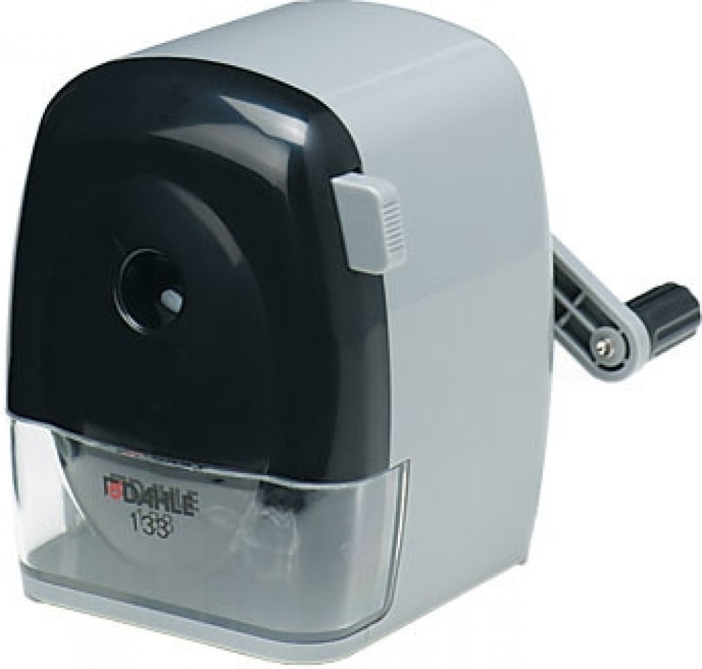 Ořezávátko stolní na kličku Dahle 133 Ruční ořezávátko s kvalitním ocelovým nožem a nastavitelným tvarem hrotu Jen občasné vyprazdňování díky velkému záchytnému koši