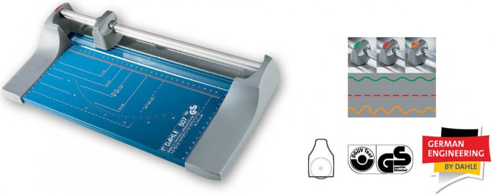 Pro kreativní uživatele existuje k modelu 507 zvláštnost sloužící k individuálnímu nastavení řezu: set řezacích hlav Dahle 960 - 3 snadno měnitelné hlavy pro perforovaný, klikatý a nepravidelný ozdobný řez.