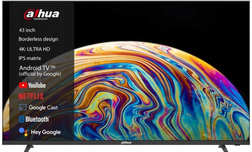 Dahua 109.22 cm LED 43 palců Android TV 2023 černé 8 ms 3840 x 2160 16 : 9 50 / 60 Hz 3 2 98 W 53 kWh F 53 kWh 53 kWh 8.7 kg 200 x 200