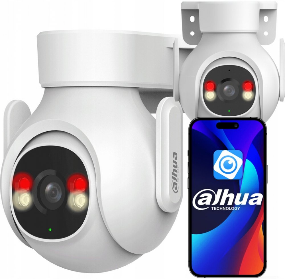 Venkovní PT kamera řady WiFi Series, instalace a ovládání mobilní aplikací DMSS, detekce vozidel, osob, auto tracking, otáčení 0°–355°, naklápění 0°–90°, integrovaný mikrofon a reproduktor (možnost obousměrné audiokomunikace), slot pro micro SD kartu, napájení 12 VDC (zdroj součástí)...