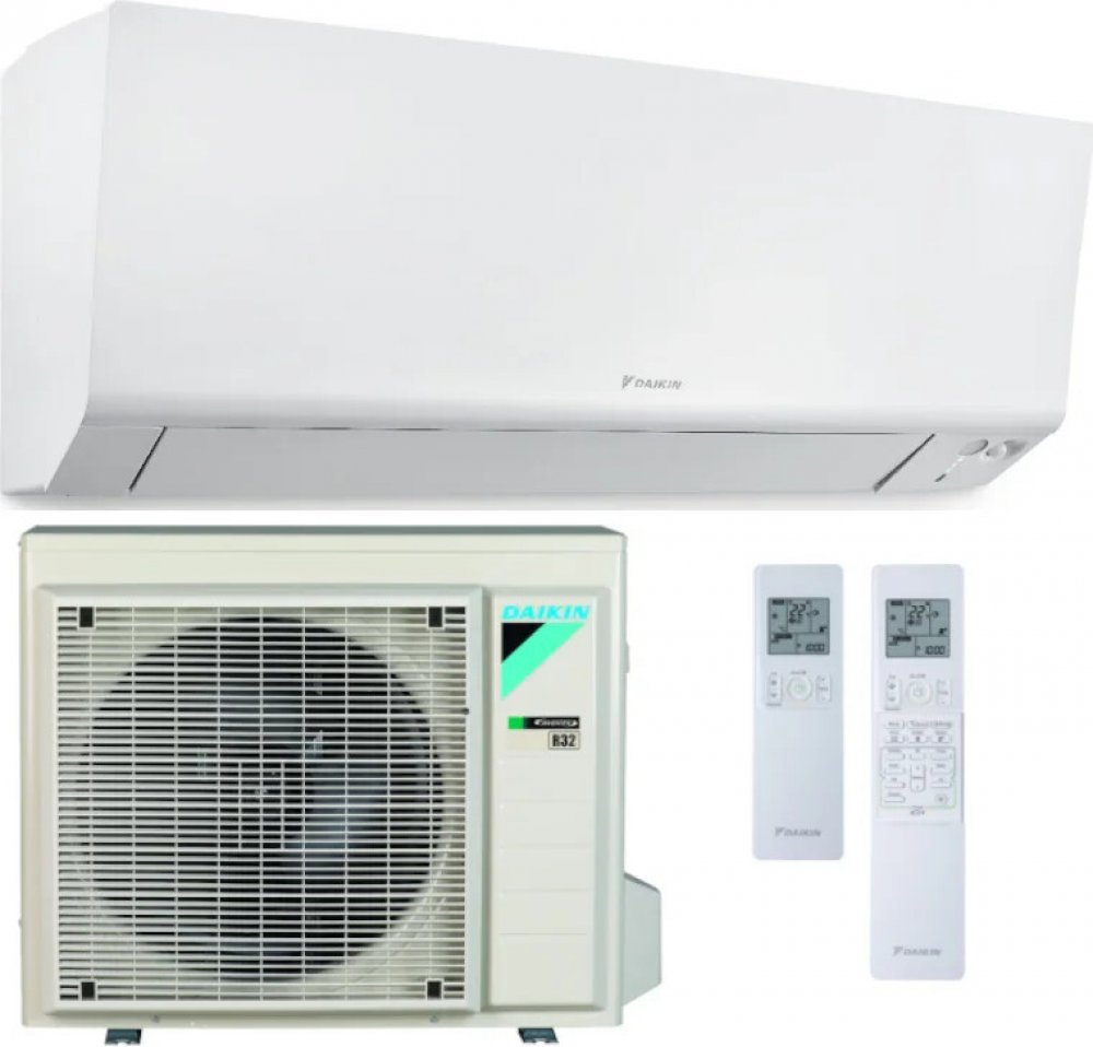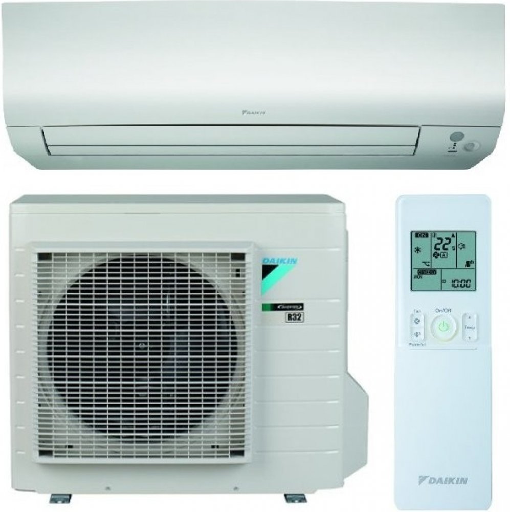 Splitová nástěnná klimatizace značky Daikin, model vyšší třídy Perfera 5 kW, energetická třída A++/A++, hlučnost vnitřní jednotky od 27 dB a venkovní jednotky 48/49 dB. Funkce: dva pohybové senzory, econo režim pro nižší spotřebu energie, 3D proudění vzduchu (ovládání lamel horizontálně i vertikálně), noční režim, 24 hodinový i týdenní časovač, ionizátor (Flash Sreamer) pro čištění vzduchu, autorestart, odvlhčování, zabudované WiFi ovládání, obsahuje filtr s apatitem titanu. Invertorová technologie, úsporné chladivo R32, v zimě topí a v létě chladí. Možno zakoupit i s montáží po celé ČR.