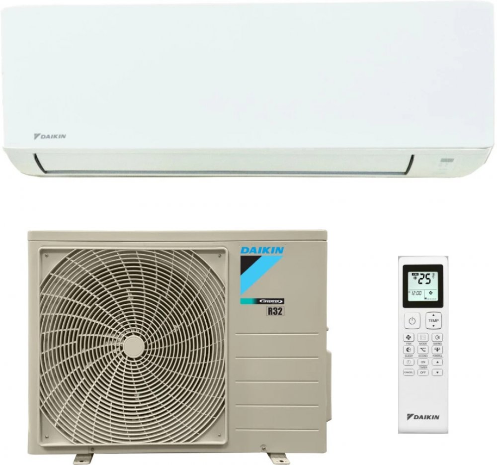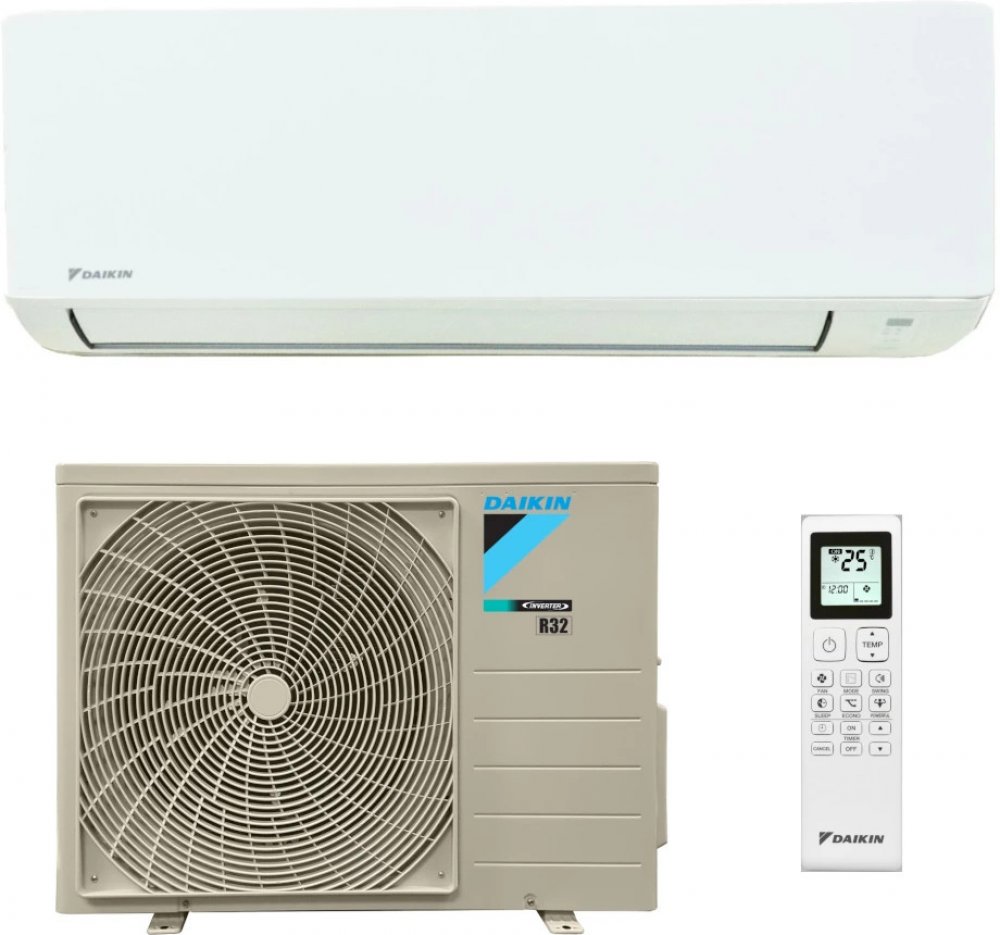 Splitová nástěnná klimatizace značky Daikin, základní model Sensira 2,5 kW, energetická třída A++/A+, hlučnost vnitřní jednotky 20 dB a venkovní jednotky 45 dB. Funkce: komfortní režim pro spánek, 24hodinový časovač, autorestart, odvlhčování, WiFi ovládání jako příslušenství k dokoupení. Invertorová technologie, úsporné chladivo R32, v zimě topí a v létě chladí. Možno zakoupit i s montáží (provádíme po celé ČR).