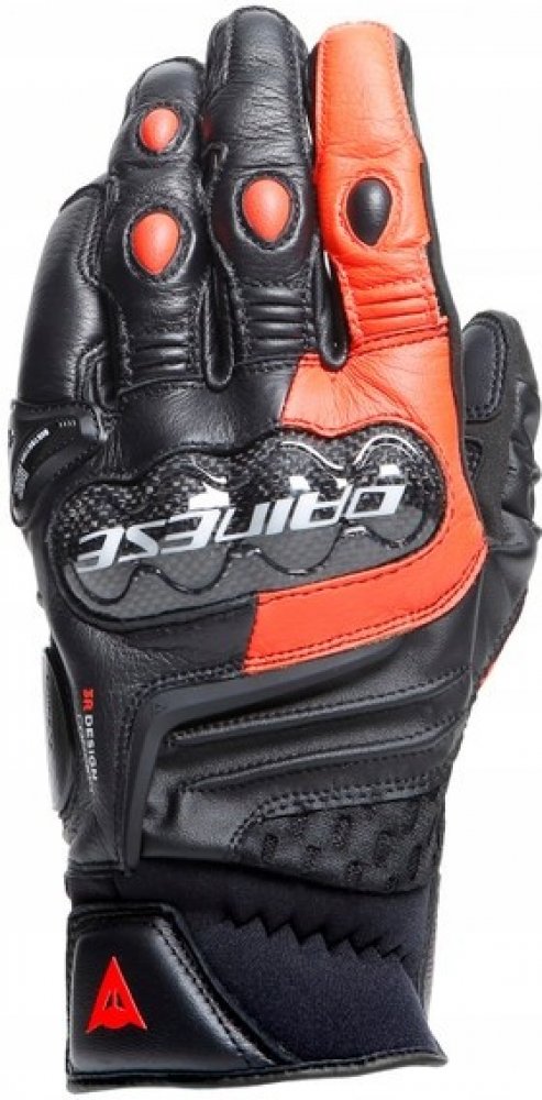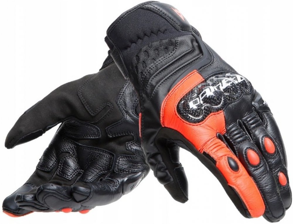 Krátké motocyklové rukavice Dainese Carbon 4 jsou sportovním modelem, který kombinuje pohodlí, chlad a ventilaci díky síťované podšívce na hřbetu ruky, špičkové bezpečnostní standardy zaručené ochranným systémem DCP na malíčku, pevnost kůže a ochranu poskytovanou karbonovými klouby, navrženými pro optimální ergonomické vlastnosti a pohodlí při nošení.