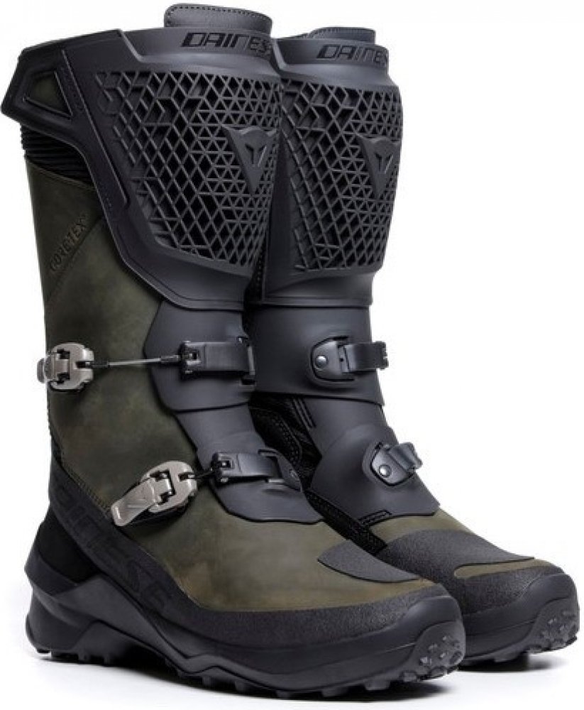 Vysoké adventure boty na motorku pro cestování i do terénu. Prvotřídní kožená konstrukce s nepromokavou a prodyšnou membránou Gore-Tex® Performance. Inovativní chránič holeně Pro- Armor a zapínání na dvě kovové přezky. Adventure cestovní boty Dainese SEEKER Gore-Tex®. Maximální pohodlí a ochrana pro výlety na motocyklu v jakémkoli terénu. Bezpečnost a kontrola pro průzkum v maximální volnosti. Prémiová kožená konstrukce s nepromokavou membránou Gore-Tex® Performance umožňuje dosáhnout vyšší úrovně odolnosti a ochrany před atmosférickými vlivy, pro bezpečné a pohodlné nošení za každého počasí. Maximální důraz na lehkost a pohodlí se snoubí s důrazem na bezpečnost jízdy, částečně díky chrániči holeně s technologií Dainese Pro-Armor, který umožňuje nejvyšší úroveň bezpečnosti a volnosti pohybu. Zapínání je bezpečné a přesné díky systému Quick Lacing se dvěma celokovovými přezkami. Inovativní asymetrická podrážka Groundtrax® s rozlišenými oblastmi pro řazení a brzdy je navržena tak, aby zajistila ideální stabilitu, přilnavost a trakci při jízdě i mimo ni, a to v jakémkoli terénu. Díky pevnosti a tuhosti běhounu jsou boty Seeker Gore-Tex® vhodný na silnici i do terénu a vždy zaručuje maximální rovnováhu a pohodlí. Vybaveny systémem nastavení na patce, který zajišťuje maximální nositelnost a snadné nazouvání. VLASTNOSTI: 2 nastavitelné kovové přezky nepromokavá membrána Gore-Tex® Performance TPU chránič řadicí páky ERGONOMIE A TEPELNÝ KOMFORT: nastavení šířky lýtka pružné klouby pro větší pohodlí vnitřní zapínání na rychlé šněrování membrána Gore-Tex Performance Comfort HLAVNÍ MATERIÁLY: svršek z hovězí usně dělené kožené vložky na vnitřní straně Gore-Tex® membrána podešev Groundtrax® CERTIFIKACE a OCHRANA: certifikované dle normy EN13634 Cat. II Pro Armor chránič holeně integrované pevné chrániče na kotnících DALŠÍ INFORMACE : Tabulka velikostí bot Dainese Technologie a materiály Dainese