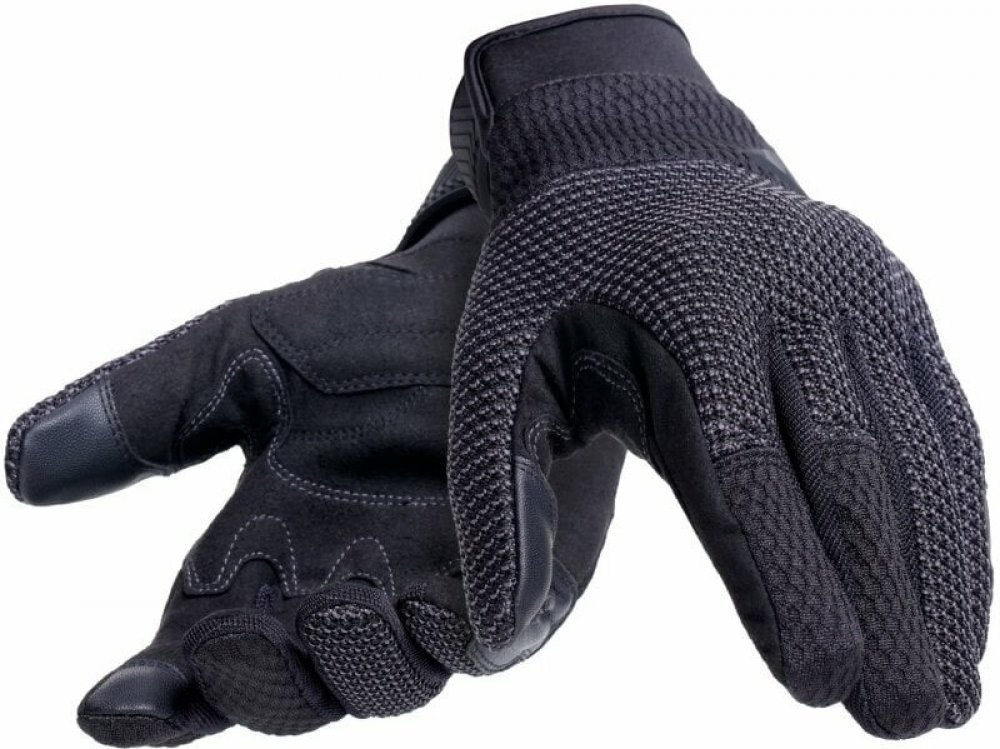 Rukavice na motorku s vložkami ze síťoviny a chrániči na kloubech. Vybaveny systémem Smart Touch.