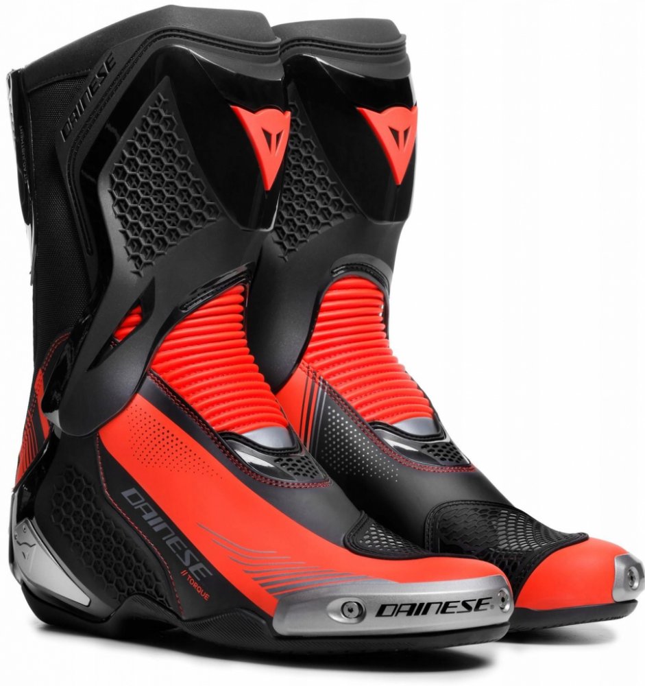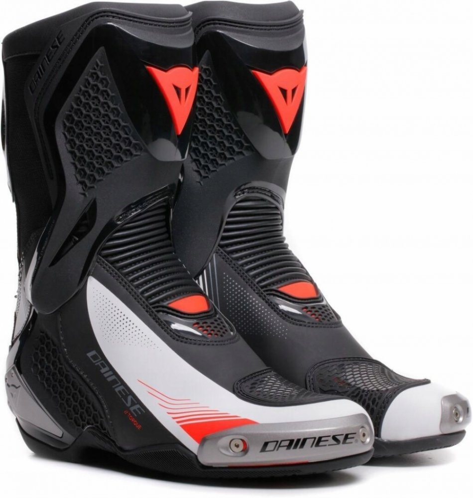 Tyto sportovní boty na motorku, inspirovány špičkovými závodními botami Dainese Axial 2, jsou vyrobené z mikrovlákna a tkaniny D-Stone™ se systémem TPU D-Axial pro vysokou přilnavost, zaručují maximální pohodlí a ochranu při zachování sportovního a atraktivního designu. Hořčíkové slidery na špičce a patě jsou vyměnitelné, což je řešení, které zároveň umožňuje výměnu zipu v případě jeho poškození. Maximální bezpečnost holeně a paty zajišťuje systém D-Axial, který lépe tlumí nárazy v případě pádu a je vybaven vnějším grafickým vzorem připomínajícím chrániče Pro-Amor 2. Inovativní asymetrická podrážka Groundtrax® s rozlišenými trakčními a brzdnými plochami je navržena tak, aby zaručovala přilnavost a odolnost vůči teplu. Šampion lehkosti a výkonu, se kterým se můžete projevit na silnici i na trati.