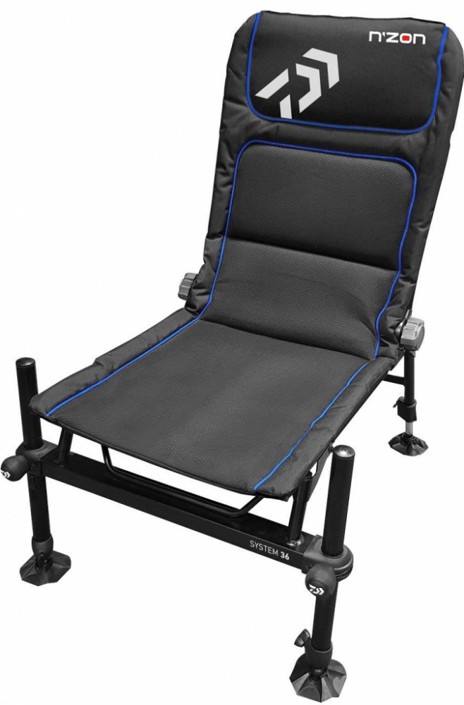 S tímto exkluzivním feederovým křesílkem N’Zon, které bylo speciálně navrženo na základě specifických požadavků moderních feederových rybářů, jste perfektně vybaveni na dlouhé vycházky u vody. Všechny čtyři nohy jsou vybaveny patkami proti zaboření a jejich délka se dá individuálně nastavit pro zajištění stability i na nerovném povrchu. Extra dlouhé opěradlo může být nastaveno přesně na vaši postavu. Vepředu se nachází dva kulaté adaptéry, které pasují na všechny běžné feederové hrazdy a doplňky s průměrem 36 mm. Obě přední části lze výškově nastavit podle vašich individuálních potřeb.
