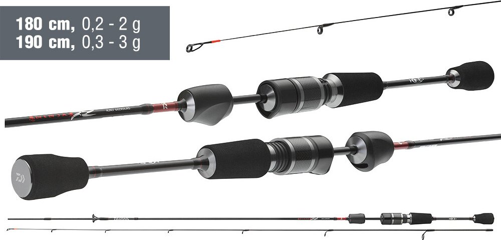 Ninja Nanojig – Ultrajemné pruty pro maximální potěšení z rybolovu Pruty Ninja Nanojig z úspěšné série DAIWA Ninja byly speciálně navrženy pro ultralehký lov s mikronástrahami. Jsou určeny pro rybáře, kteří hledají nejjemnější a nejlehčí ovládání nástrahy, maximální odezvu a intenzivní zážitek z rybolovu – ideální pro techniky využívající extrémně lehké nástrahy. Díky ultrajemné špičce a měkké páteři poskytují pruty Ninja Nanojig výjimečný cit při zdolávání. Dokonce i malé ryby poskytují obrovskou zábavu. Disponuje blankem z HMC+ uhlíku a kvalitními očky Seaguide.